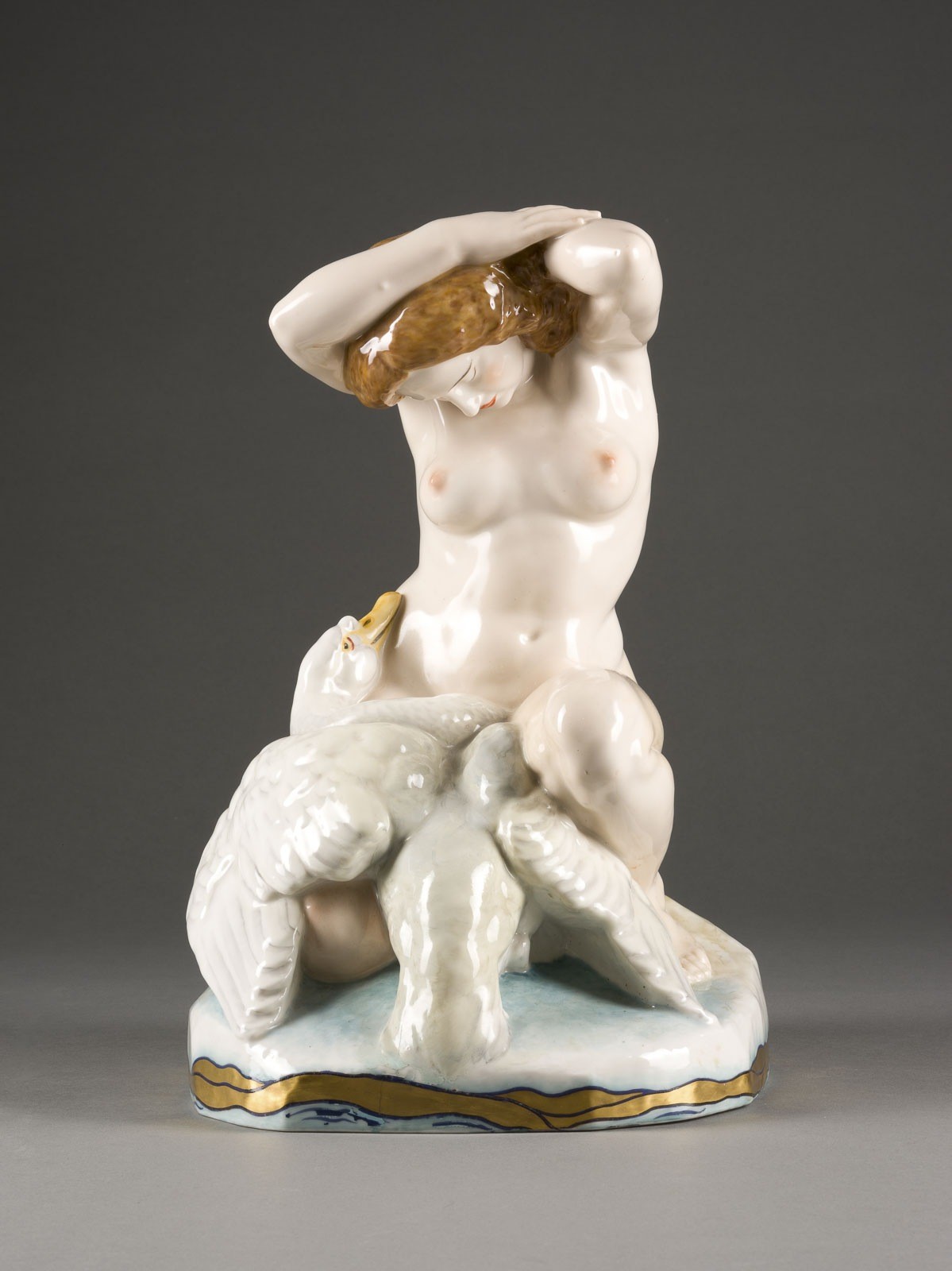 Porzellan, polychrom und gold staffiert. H. 34 cm. Prägemarke mit schnürendem Fuchs und 'Schwarzburger Werkstätten', Modellnummer 'U74'.