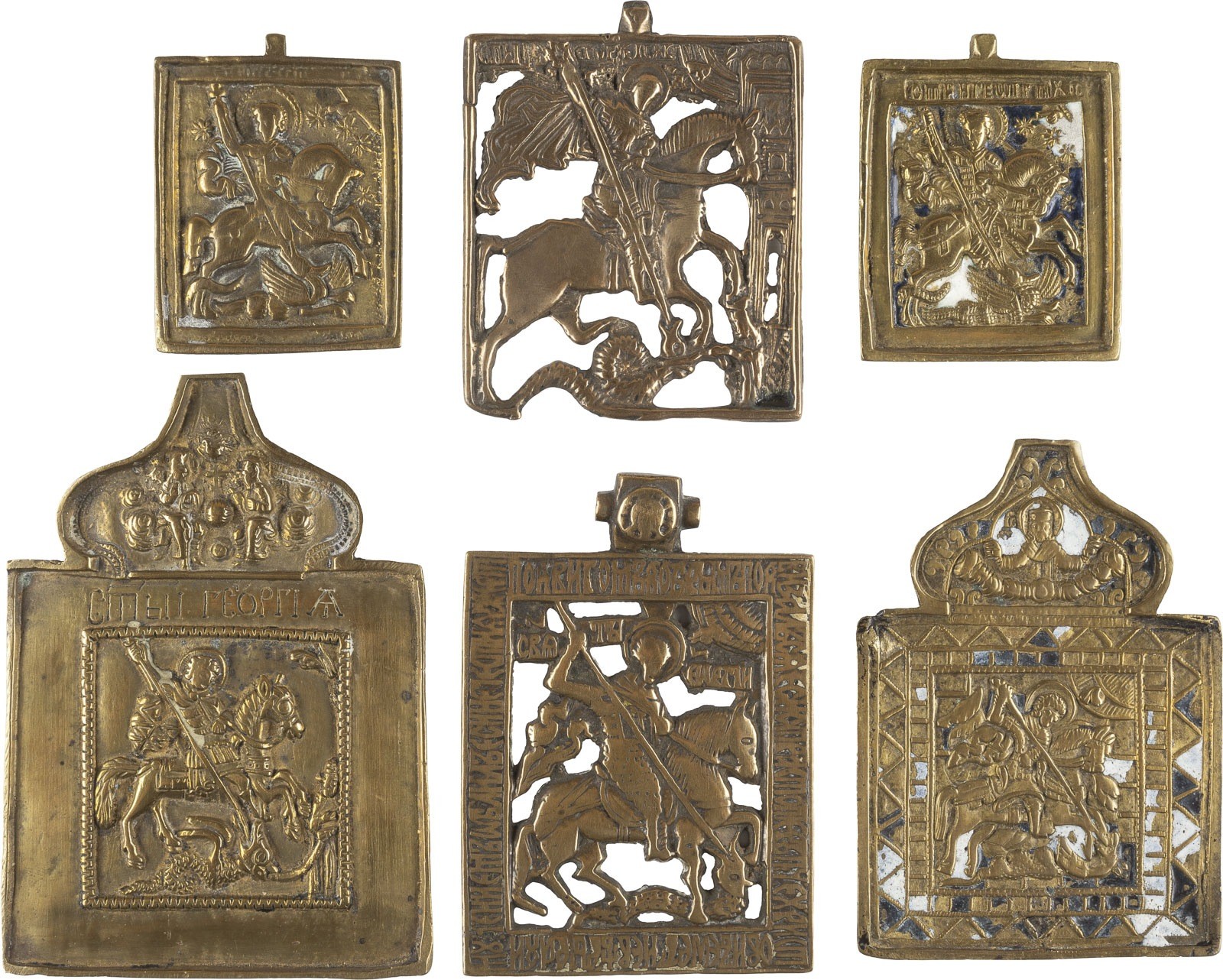 SAMMLUNG VON SECHS BRONZE-IKONEN MIT DEM HEILIGEN GEORG, DEM DRACHENTÖTER