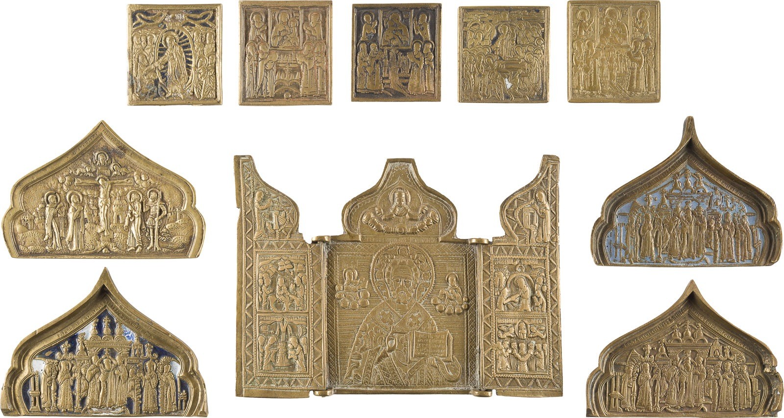 SAMMLUNG VON ZEHN BRONZE-IKONEN: FESTTAGE, AUSGEWÄHLTE HEILIGE SOWIE EIN TRIPTYCHON MIT DEM HEILIGEN NIKOLAUS VON MYRA
