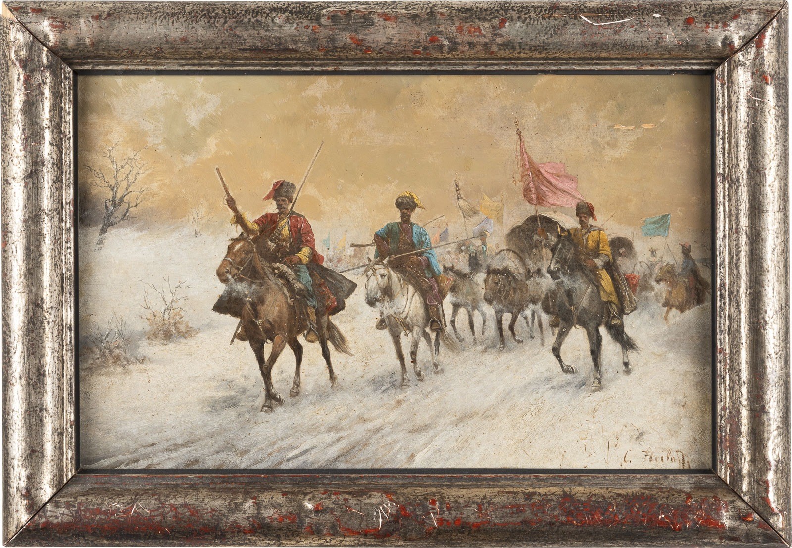 ADOLF BAUMGARTNER-STOILOFF ('KONSTANTIN STOILOFF') 1850 Linz - 1924 Vienna THE GOVERNOR TRAVELS Oil on panel. 30,5 x 47 cm (F. 37 x 53,5 cm). Signed lower right 'C. Stoiloff'. Retouches, with min. losses of paint.