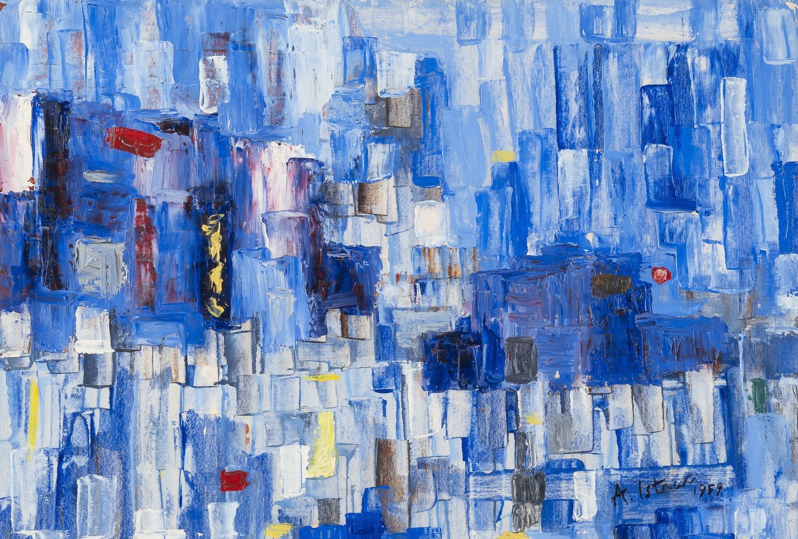 ALEXANDRE ISTRATI 1915 Dorohoi - 1991 Paris COMPOSITION Dated 1959 Oil on cardboard. 27 x 39,8 cm (F. 50,5 x 61,5 cm). Framed behind glass (verso sealed, unopened). Signed and dated lower right 'A. Istrati 1959'. Min. rubbed at margins.