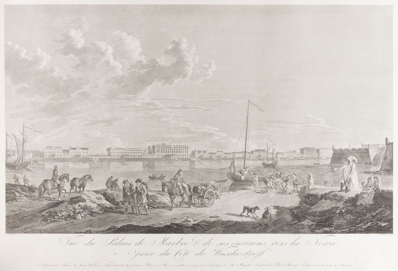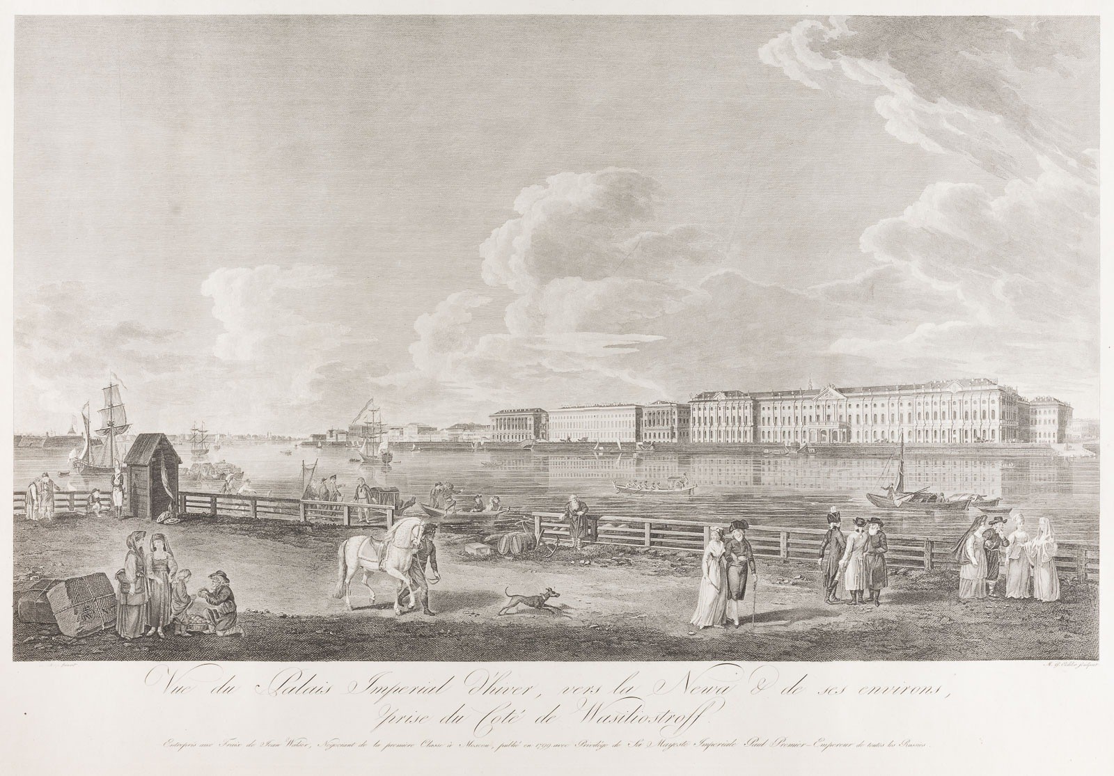 TWO WORKS WITH VIEWS OF NEVA RIVER: MARBLE PALACE AND WINTER PALACE Swiss, M.G. Eichler, after Mayr, 1799 Engravings on paper. Each 53 x 76 cm. Each titled, inscr. and dated below. Margins slightly rubbed.