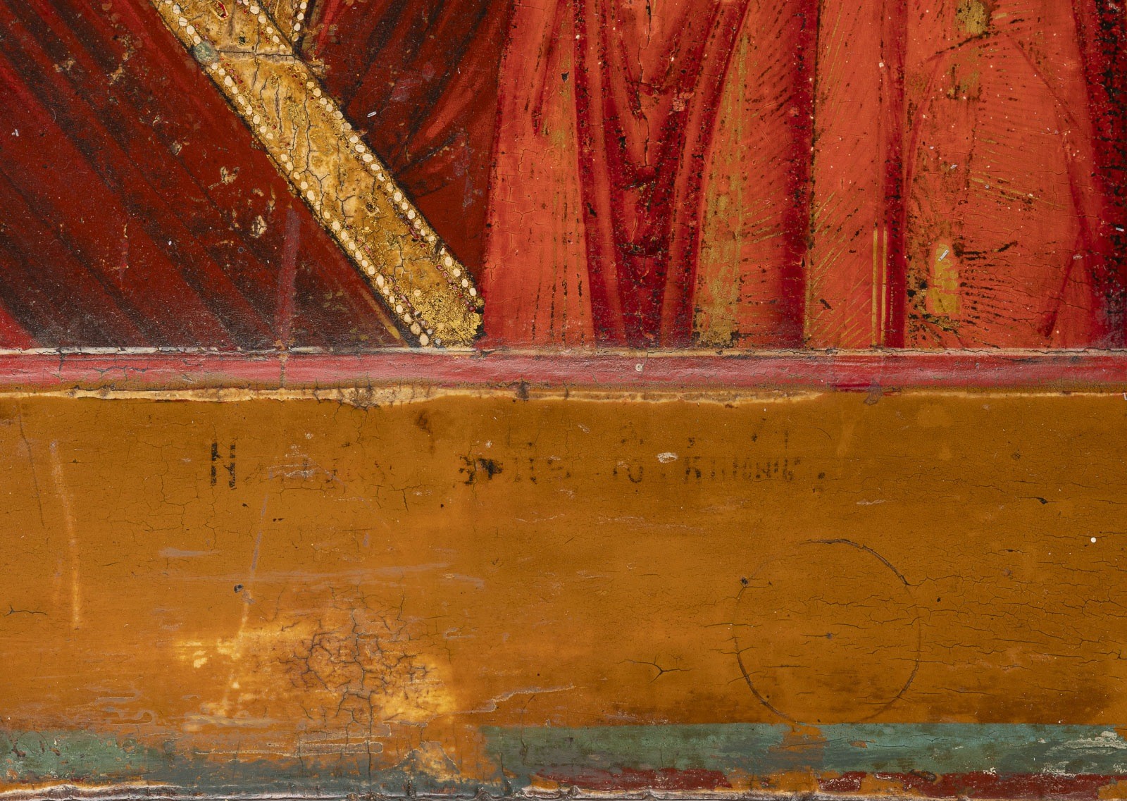 A DATED ICON SHOWING THE KAZANSKAYA MOTHER OF GOD Russian, dated 1848 Tempera on wood panel with kovcheg. The haloes and hems of the garments made of gold. Two selected saints on the borders: Guardian Angel and St. Leontiy. Inscribed and dated '7356' along the lower border. Wearings. 31 x 26.2 cm.