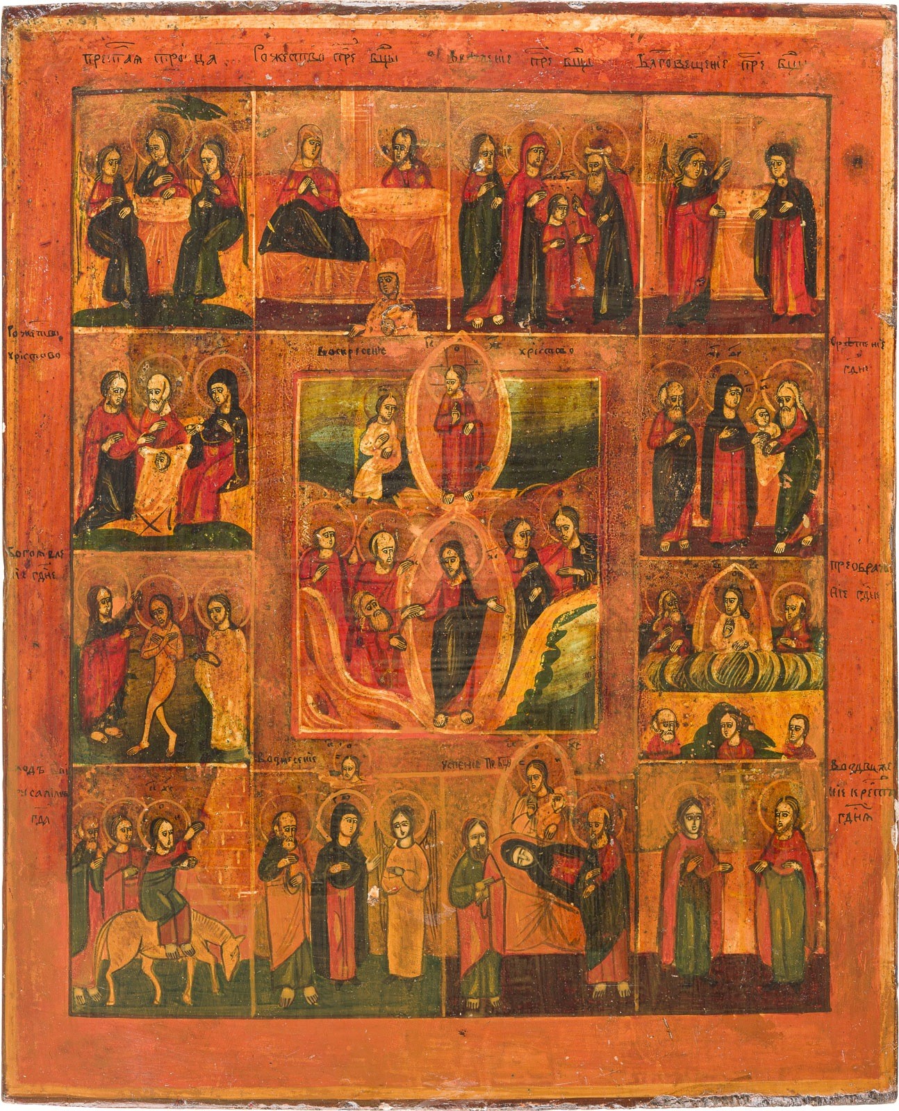 A FEAST DAY ICON Russian, 19th century Tempera on wood panel. Partially restored. 36.8 x 30.3 cm.