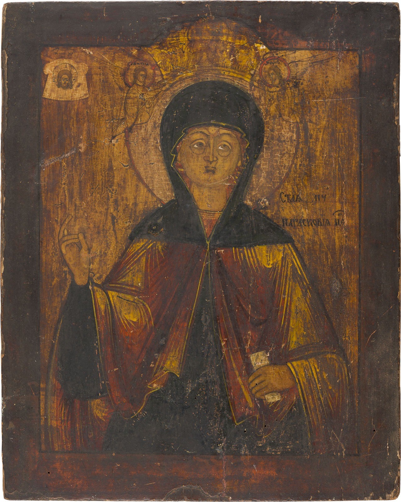 A LARGE ICON SHOWING ST. PARASKEVA Russian, 19th century Tempera on wood panel. Minor losses, minor areas of retouching. 37.8 x 31.2 cm.