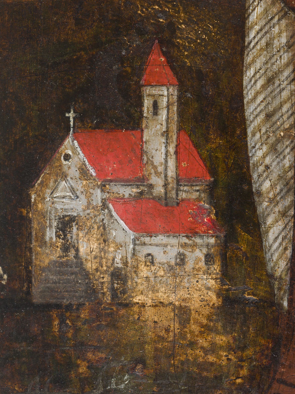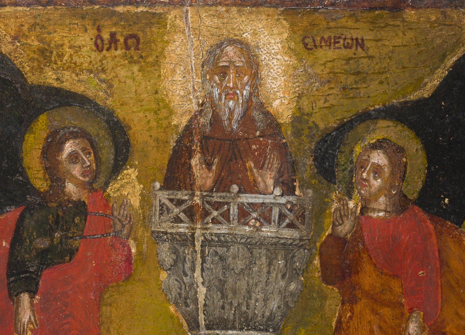 A LARGE ICON SHOWING ST. SIMEON STYLITES Greek, 17th century Tempera on wood panel. The background made of gold. Vertical crack restored, areas of retouching. 44.3 x 32.5 cm.