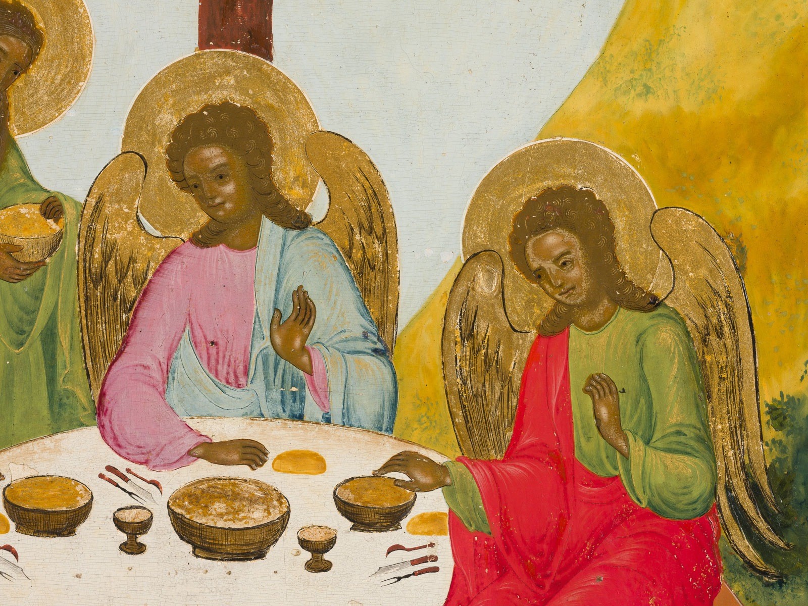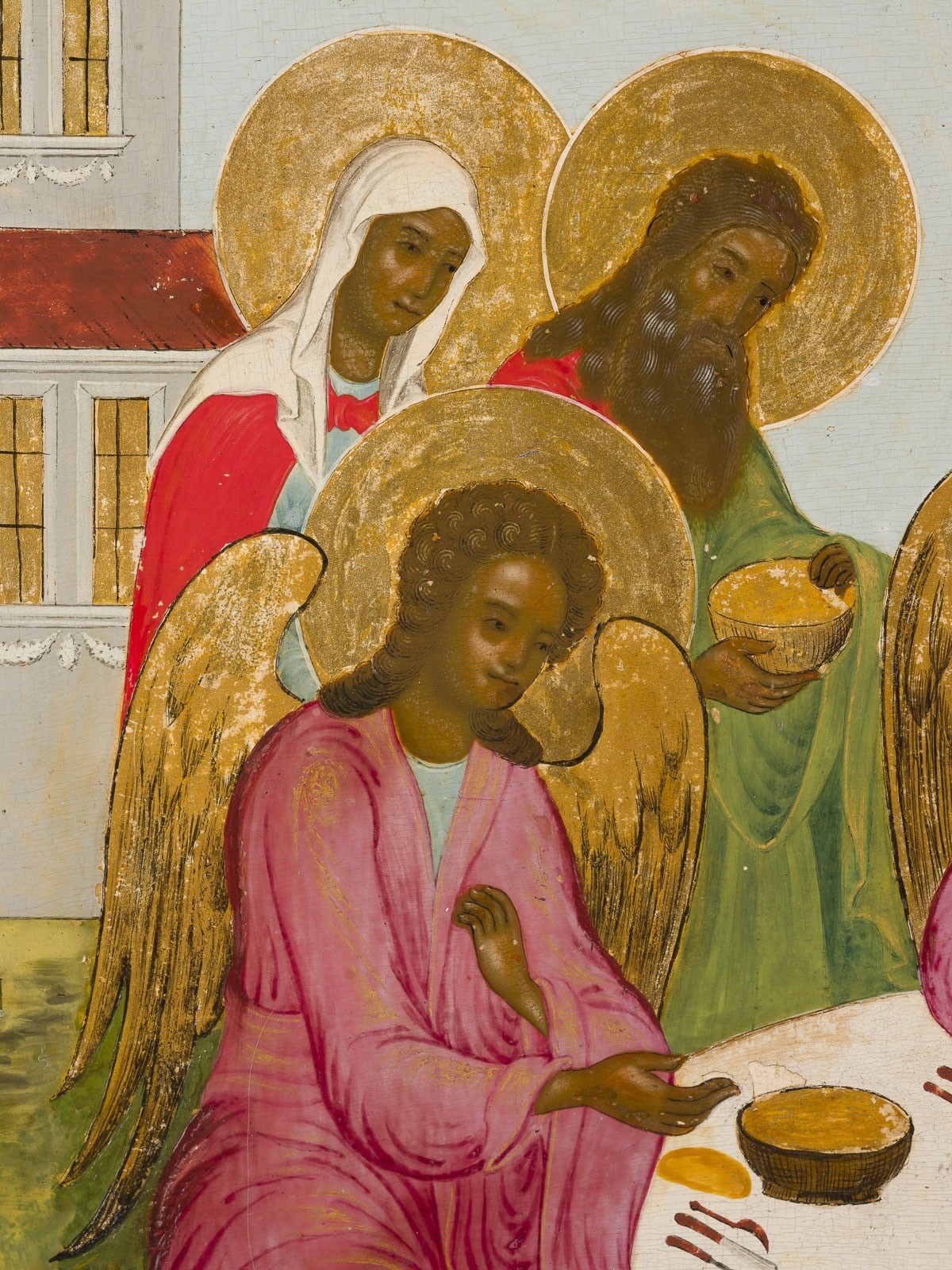 GROSSFORMATIGE IKONE MIT DER ALTTESTAMENTLICHEN DREIFALTIGKEIT MIT BASMA