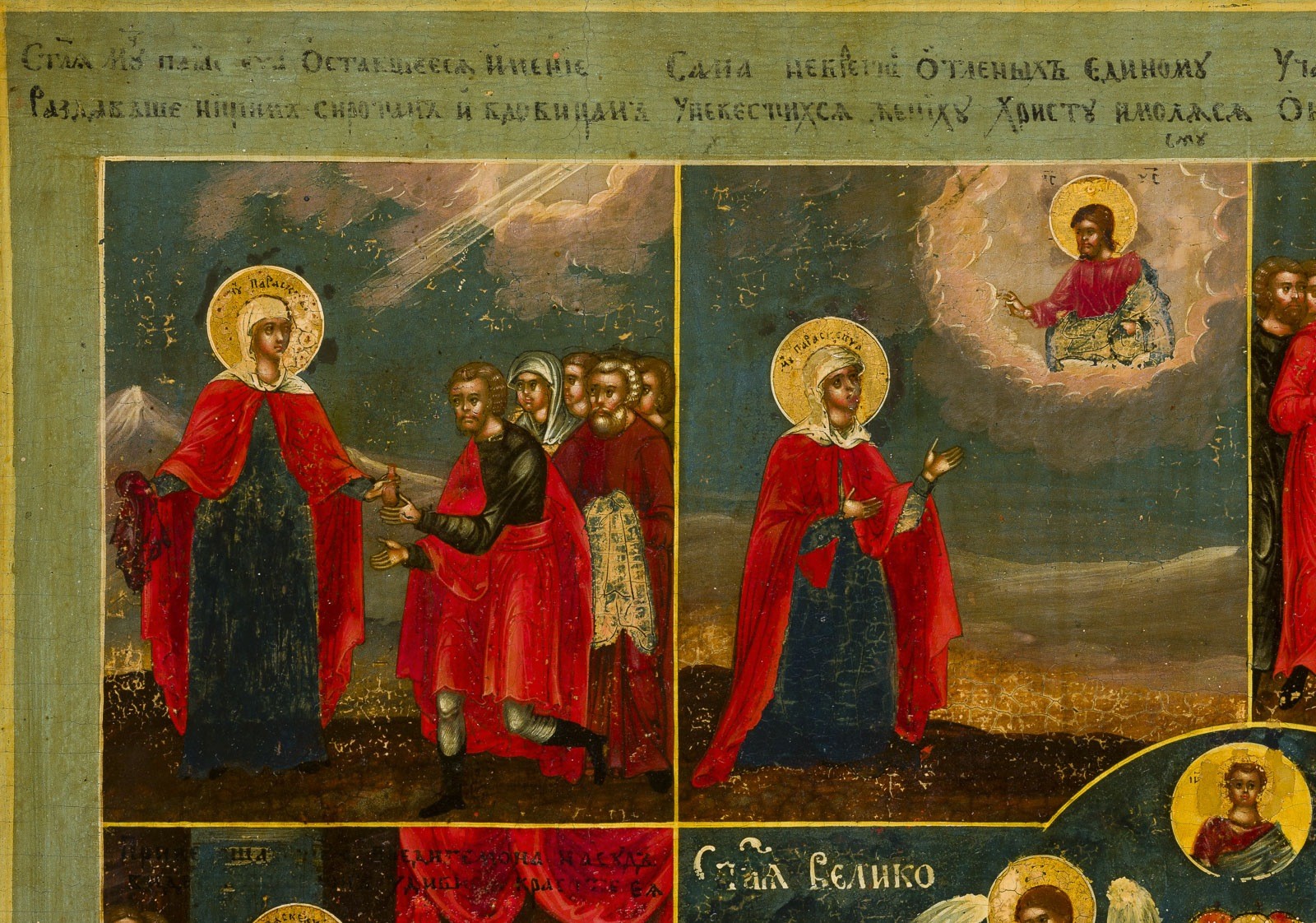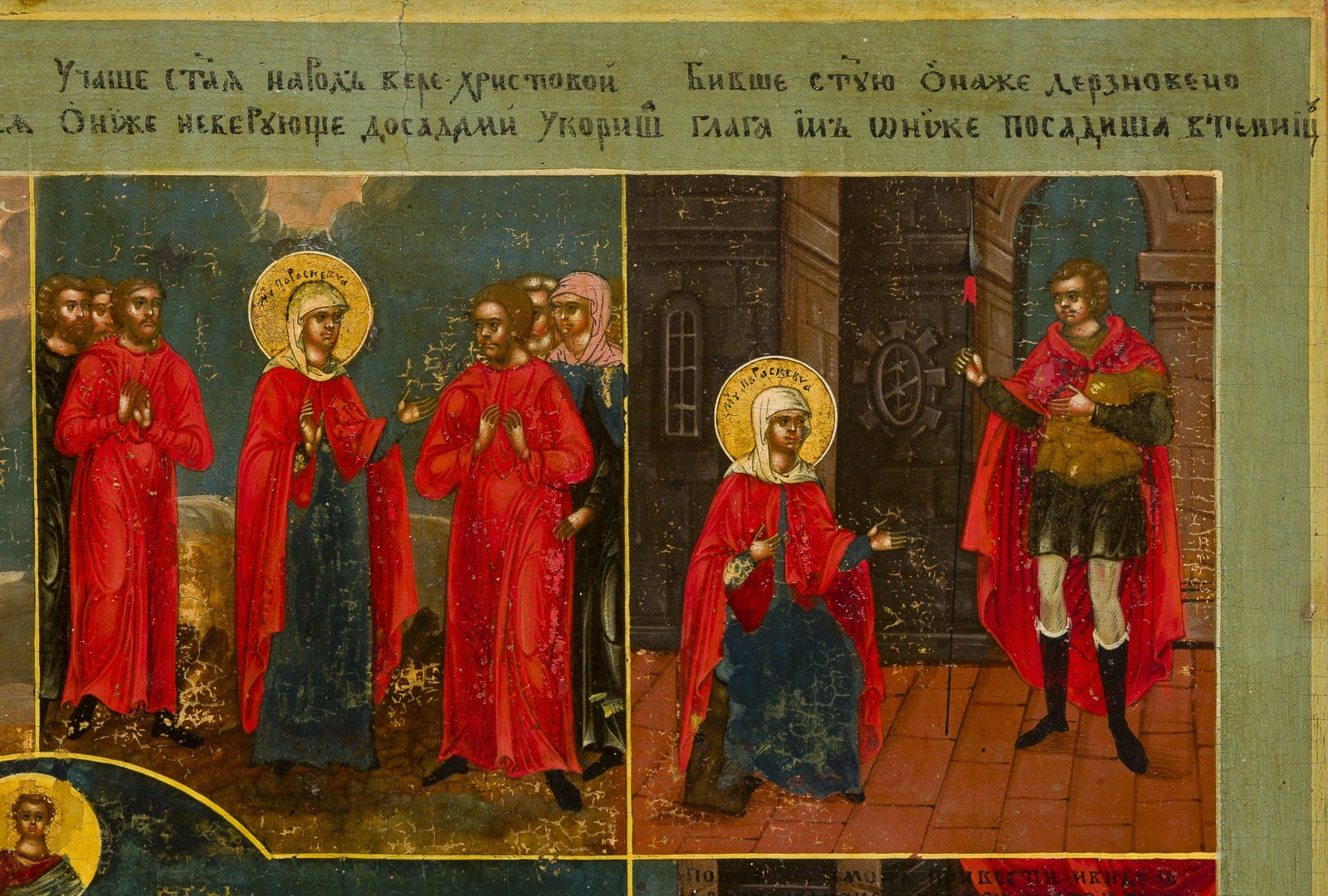 GROSSFORMATIGE UND SELTENE VITA-IKONE MIT DER HEILIGEN PARASKEWA