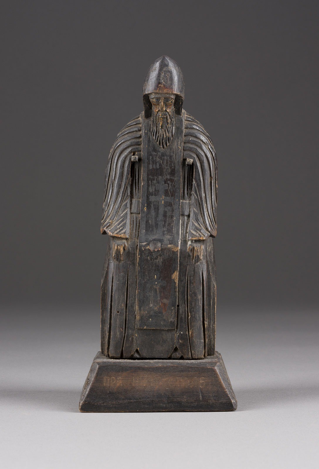 A CARVED WOODEN FIGURE OF ST. NIL OF STOLOBNOE Russian, 19th century Naturalistically carved. Minimally damaged. 22.5 cm high.