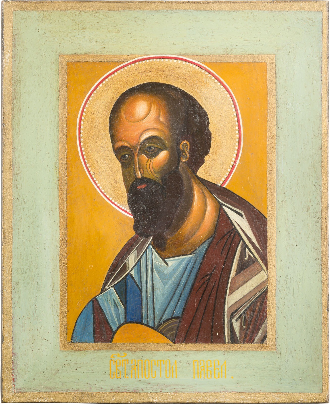 AN ICON SHOWING THE APOSTLE PAUL 2nd half of the 20th century Oil on wood panel. The halo made of gold. 24.3 x 19.7 cm.