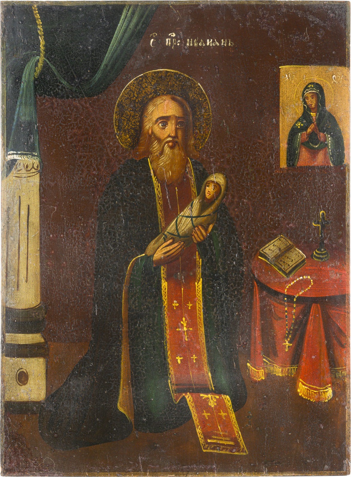 AN ICON OF SAINT JULIAN Russian, 19th century Oil on wood panel. Partly restored. 39.4 x 29.4 cm.