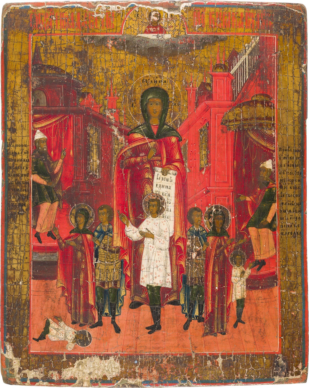 AN ICON SHOWING STS. YULITTA AND KIRIK Russian, Vetka, 19th century Tempera on wood panel. The background made of silver, covered by a golden lacquer. Paint losses. 35 x 29 cm.