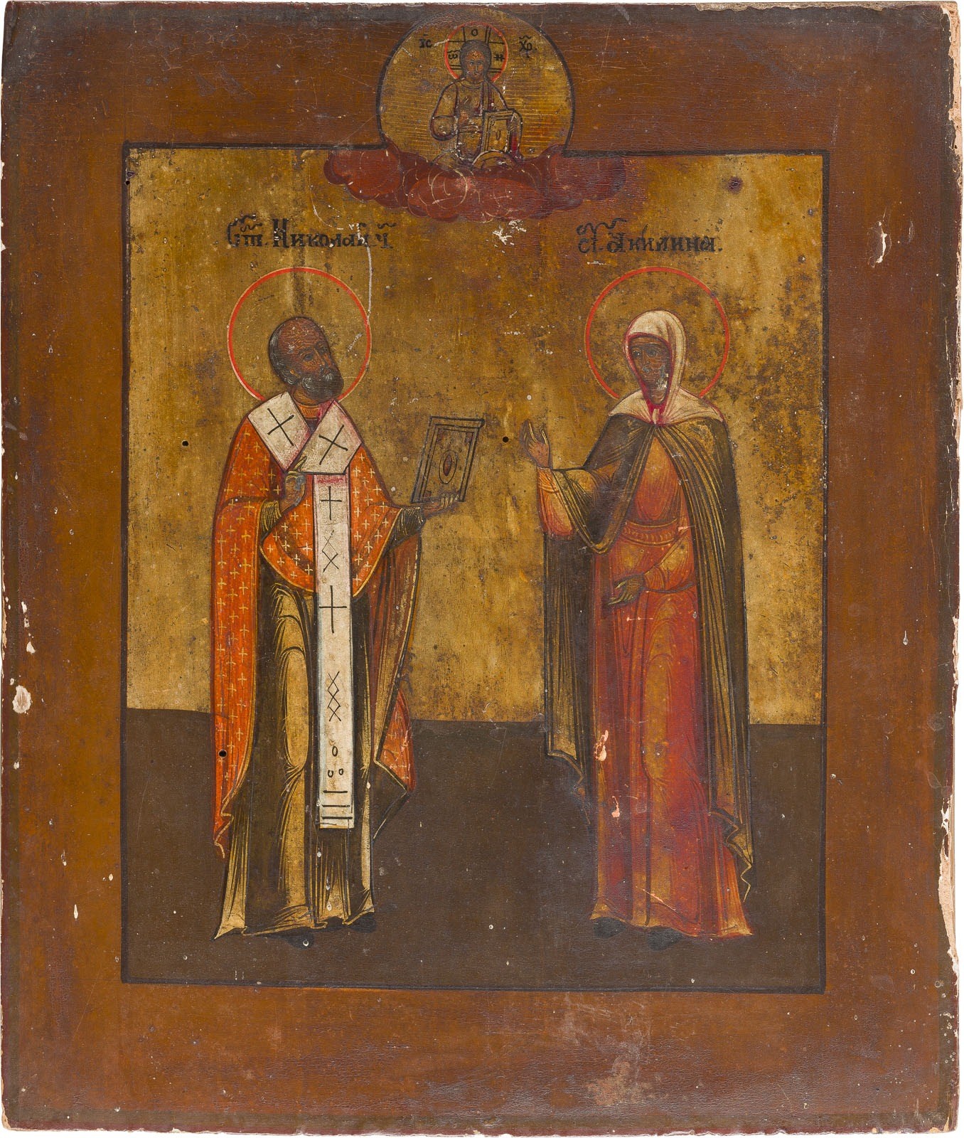 IKONE MIT DEN HEILIGEN NIKOLAUS VON MYRA UND AKILINA