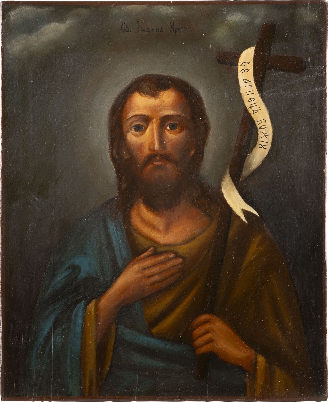 AN ICON SHOWING ST. JOHN THE FORERUNNER Russian, 2nd half 19th century Oil on wood panel. Restorations. 32 x 26 cm.