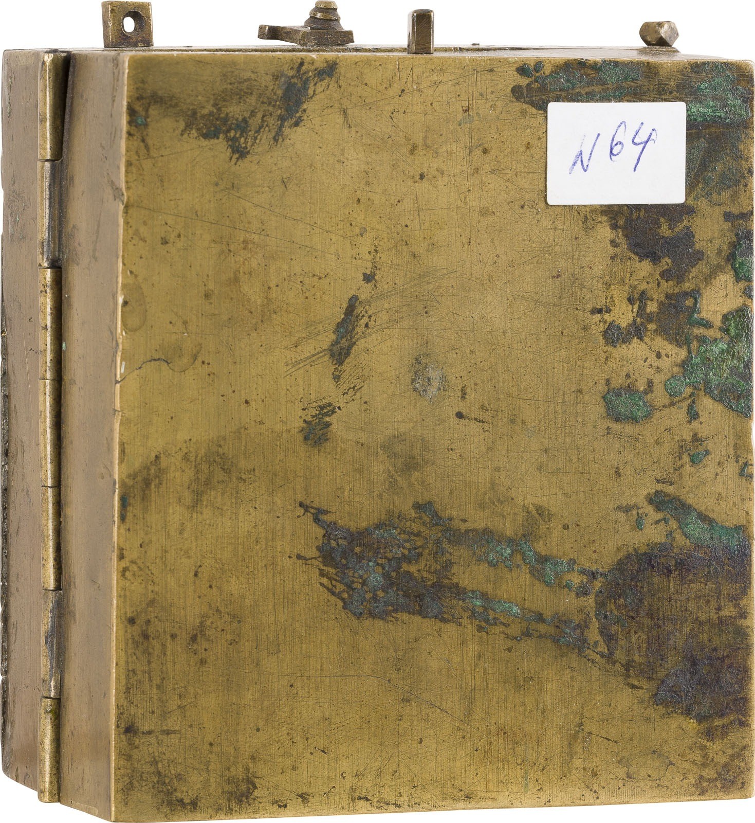 A SMALL TRIPTYCH SHOWING THE EXTENDED DEISIS Russian, 18th century Tempera on wood panels. Painted on gold ground. Brass-mounted. Losses, restored. 10 x 26.8 cm (extended).