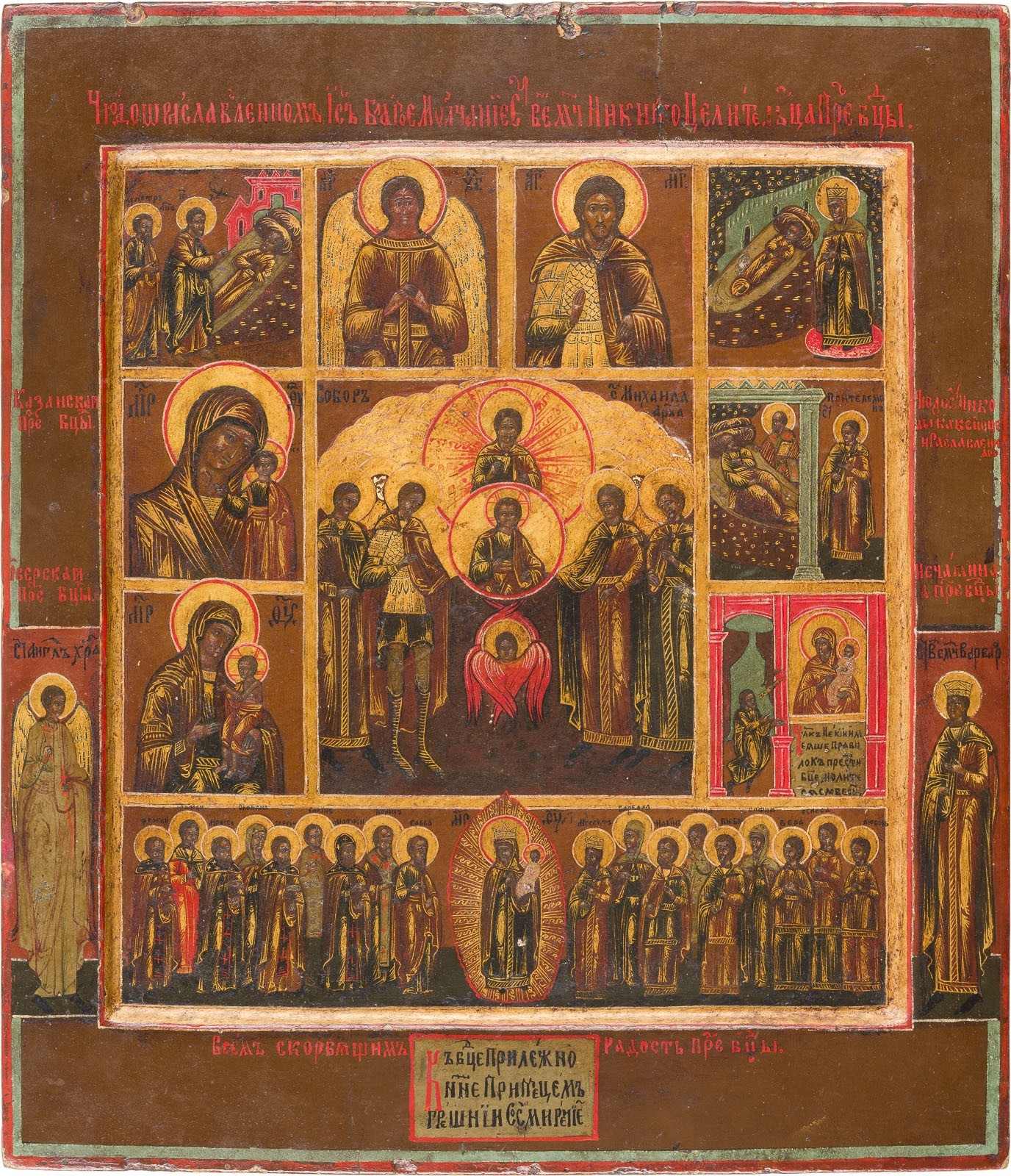 MEHRFELDER-IKONE MIT DER SYNAXIS DER ERZENGEL, GNADENBILDERN DER GOTTESMUTTER UND AUSGEWÄHLTEN HEILIGEN