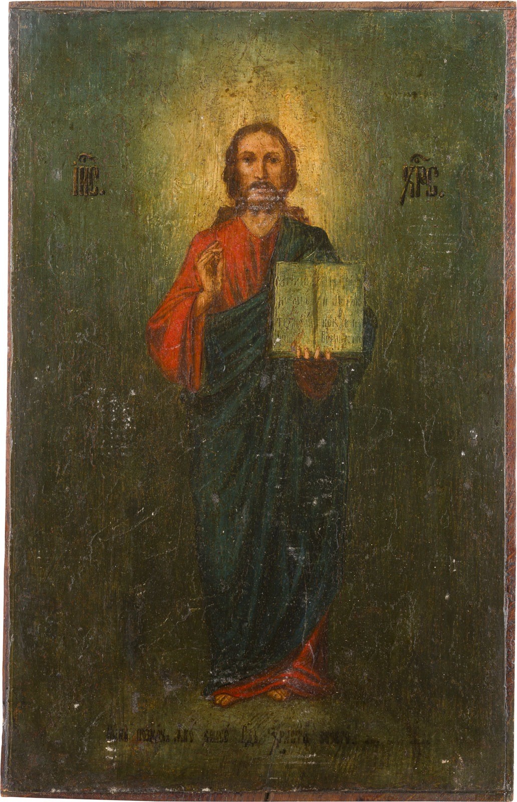 A MONUMENTAL ICON SHOWING CHRIST THE SAVIOUR Russian, 2nd half 19th century Oil on wood panel. Minimally restored. 57.6 x 36.6 cm.