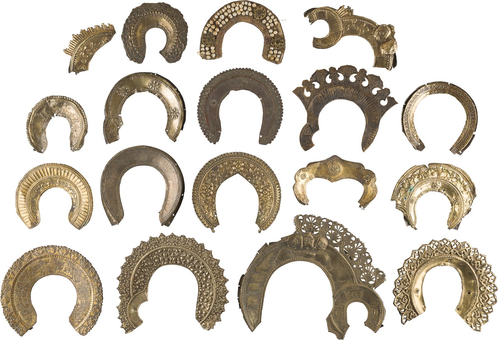 A COLLECTION OF 17 LARGE HALOES Russian, 18th/19th century Brass. 10.5-25 cm long.