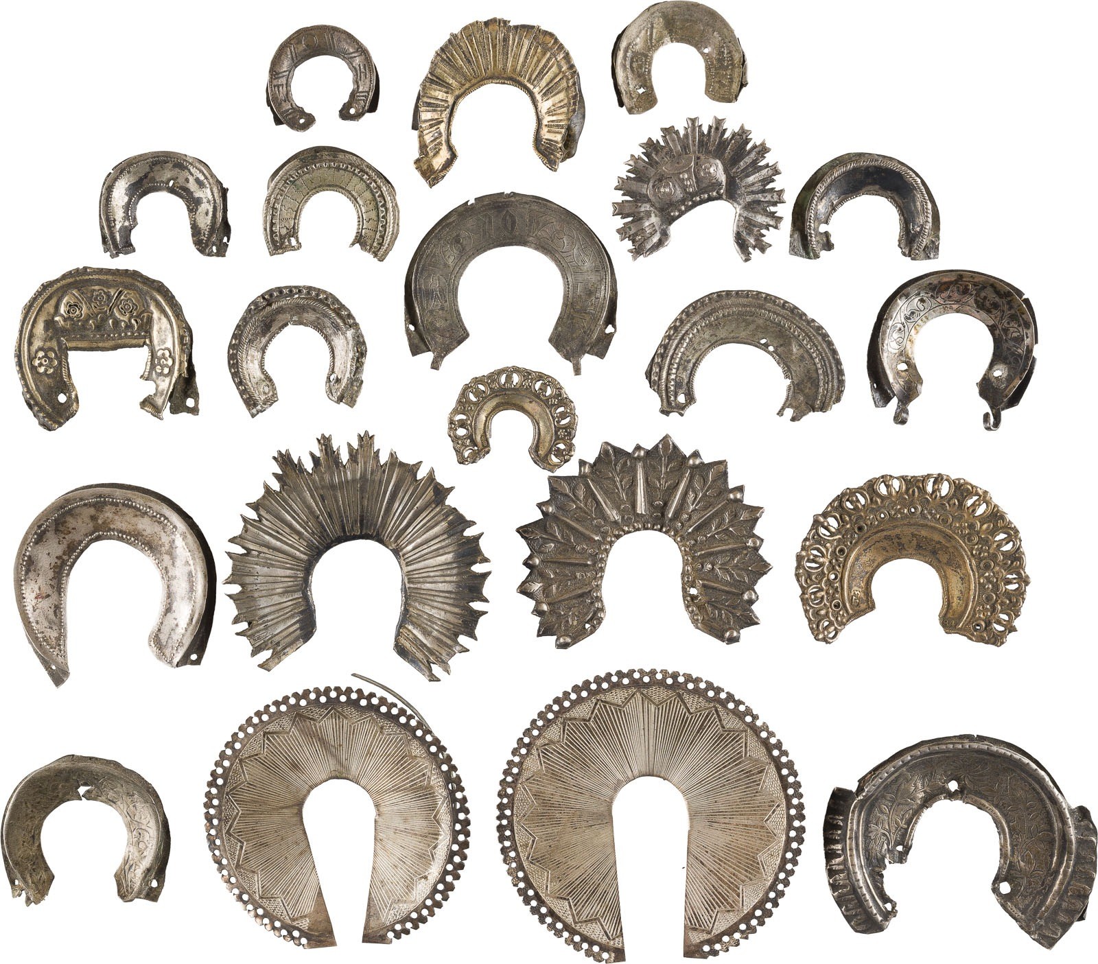 A COLLECTION OF 21 HALOES Russian, 18th/19th century Silver / metal. Some with assayer's marks and master's marks. Partly damaged. 2.7-7.5 cm long.