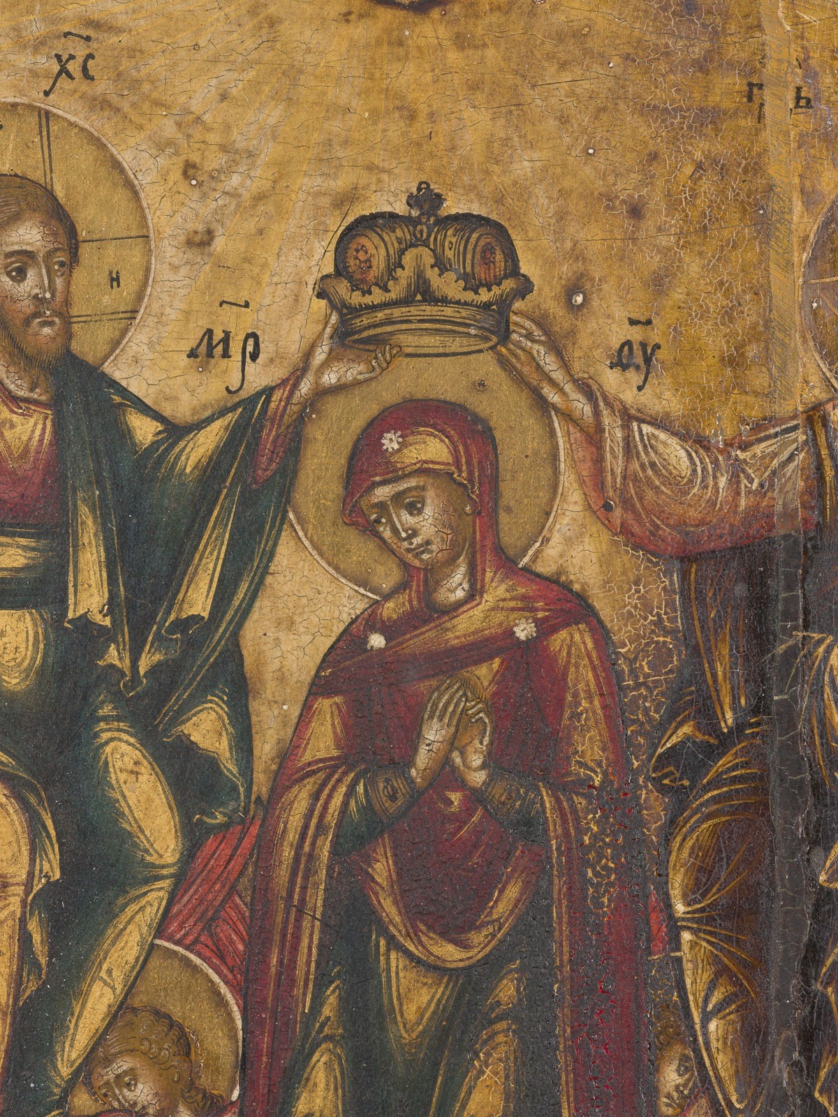 SEHR FEINE IKONE MIT DER KRÖNUNG DER GOTTESMUTTER