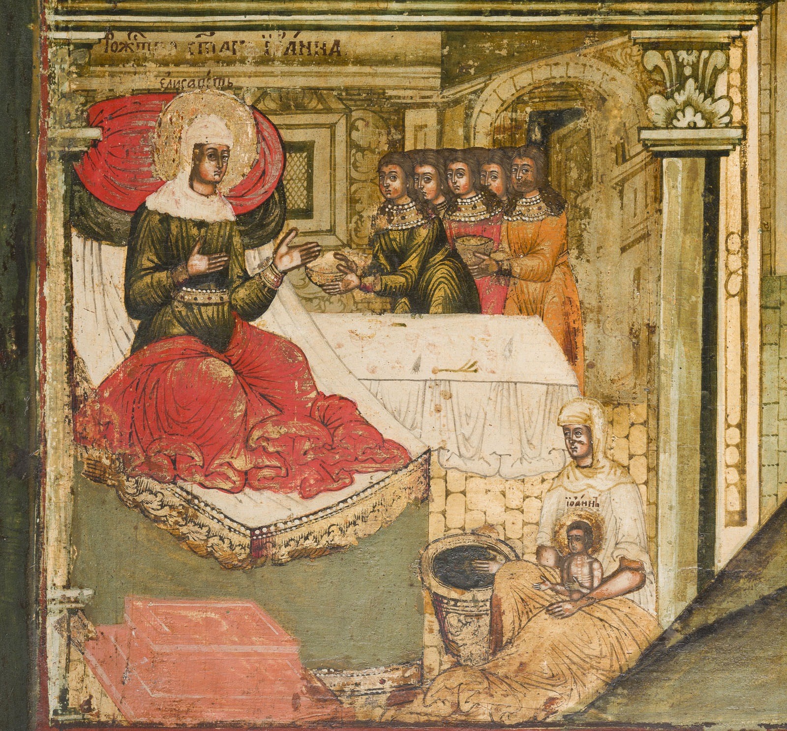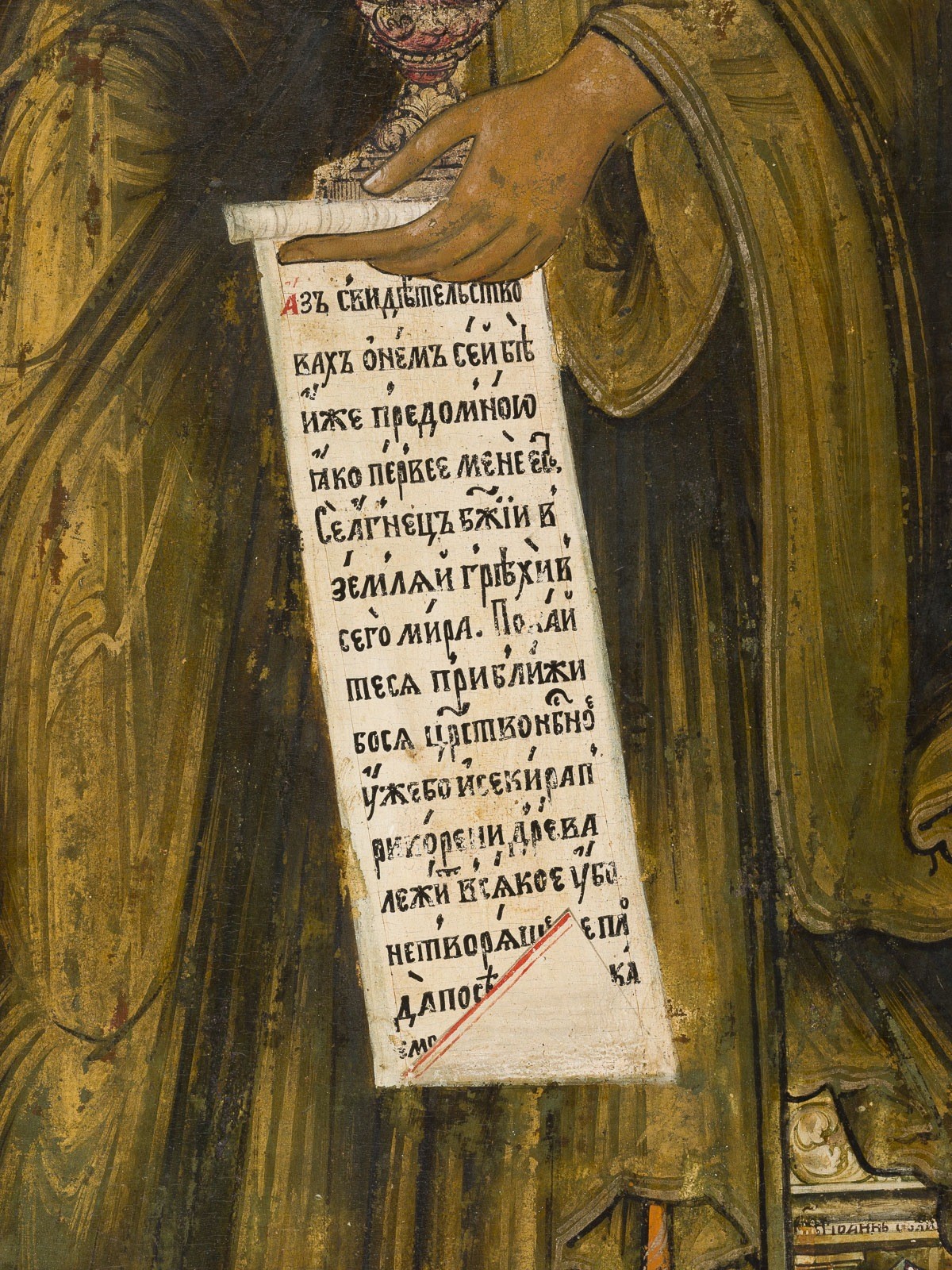 SEHR FEINE UND MONUMENTALE IKONE MIT DEM HEILIGEN JOHANNES DEM VORLÄUFER MIT SZENEN SEINER VITA AUS EINER KIRCHEN-IKONOSTASE