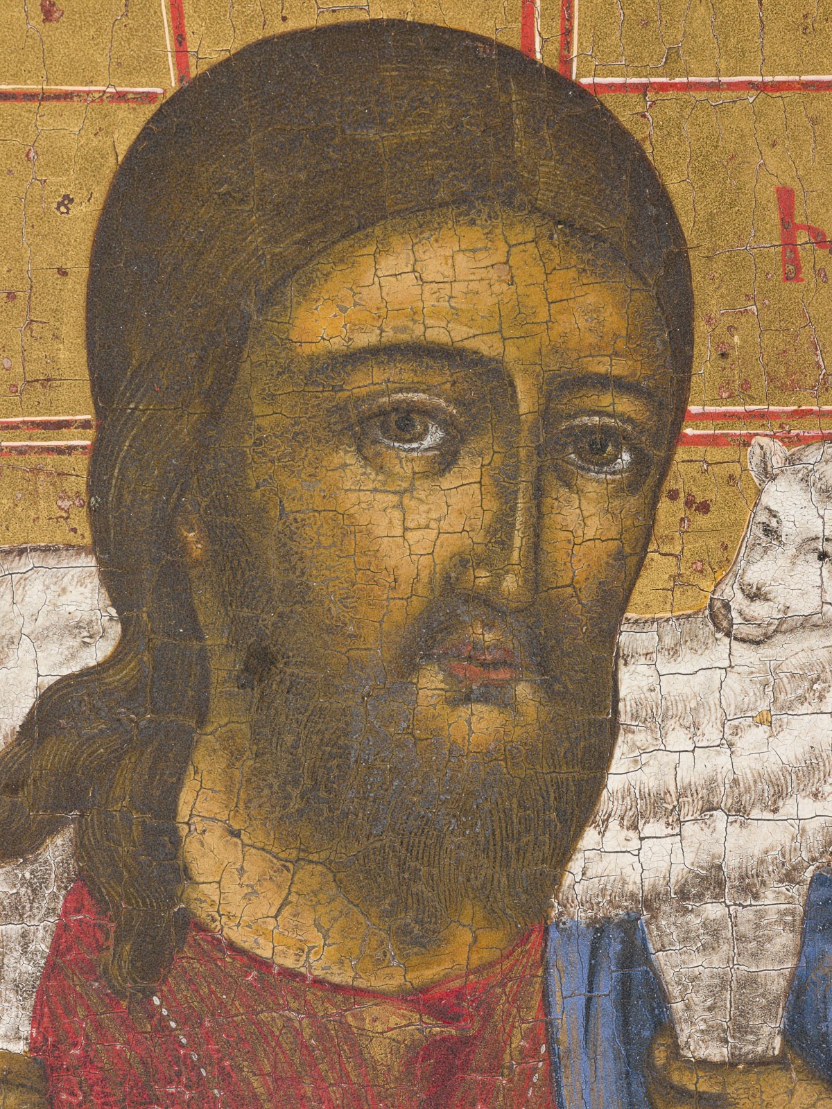SEHR SELTENE IKONE MIT CHRISTUS, DEM GUTEN HIRTEN