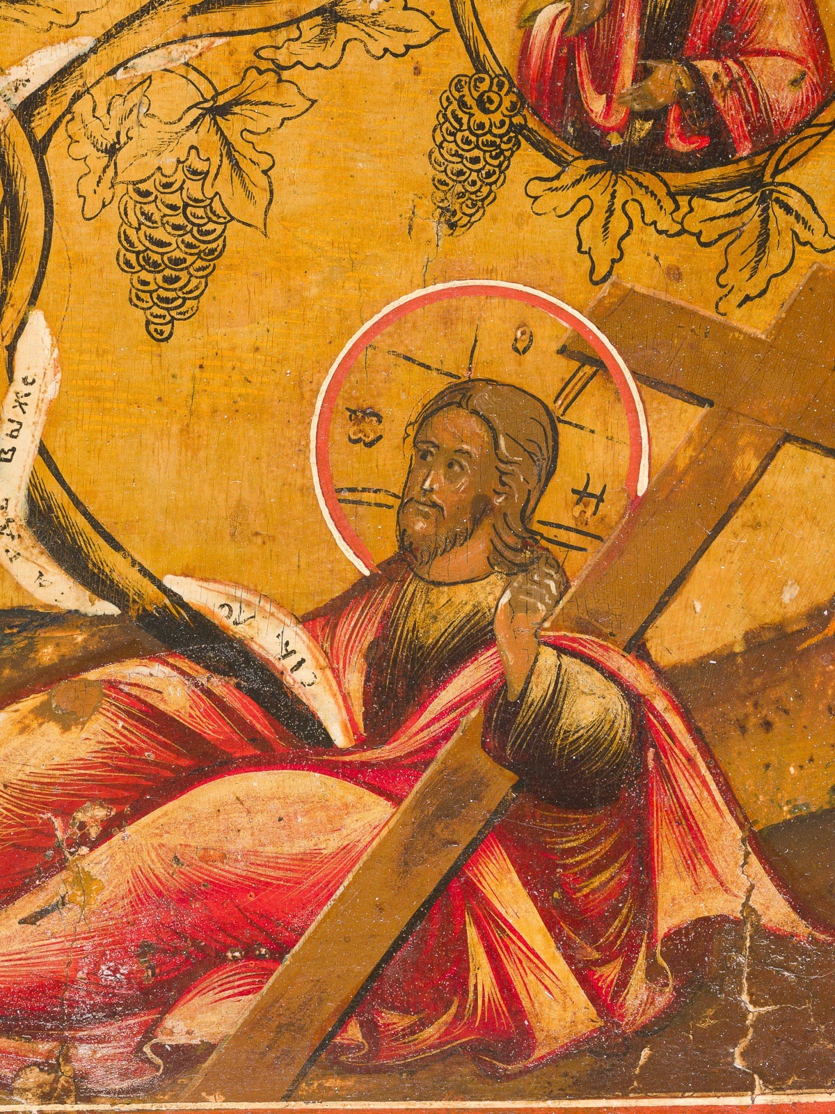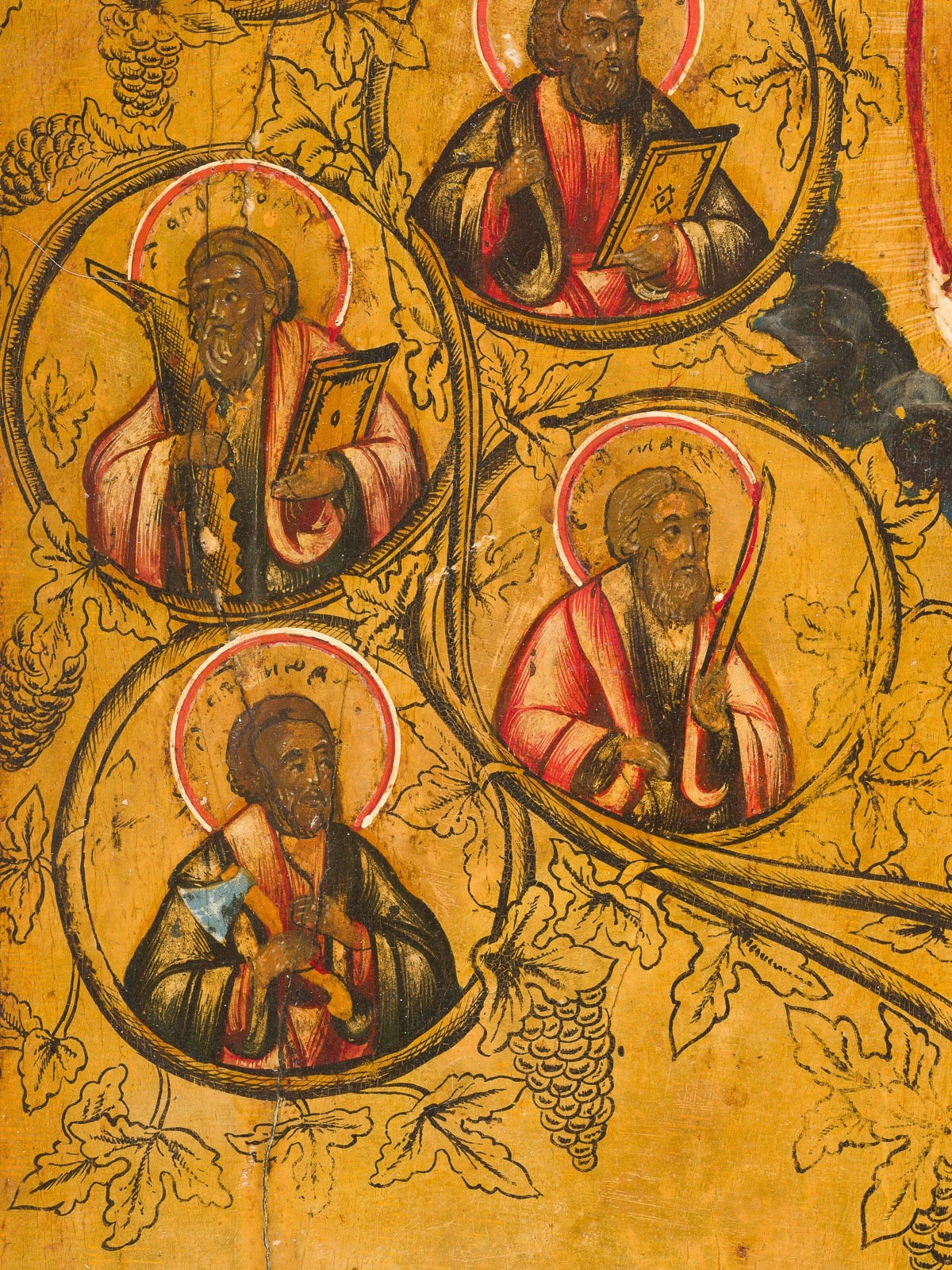 SEHR SELTENE UND GROSSE IKONE MIT CHRISTUS UND DEN APOSTELN 'WEINSTOCK UND REBEN'