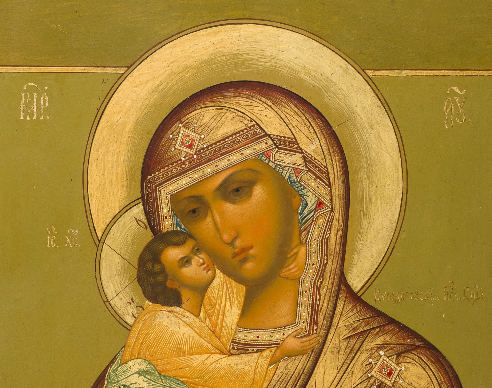 SIGNIERTE UND SEHR FEINE IKONE MIT DER GOTTESMUTTER FEODOROWSKAJA