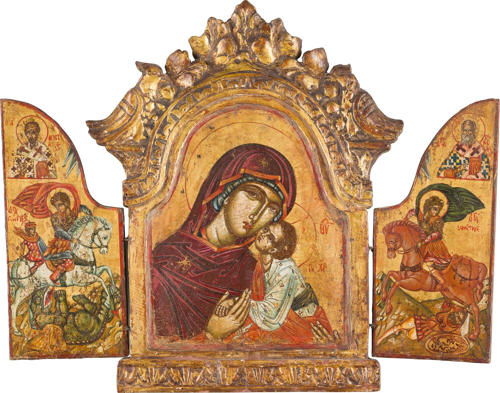 TRIPTYCHON MIT DER GOTTESMUTTER DER PASSION UND DEN REITERHEILIGEN GEORG UND DEMETRIOS
