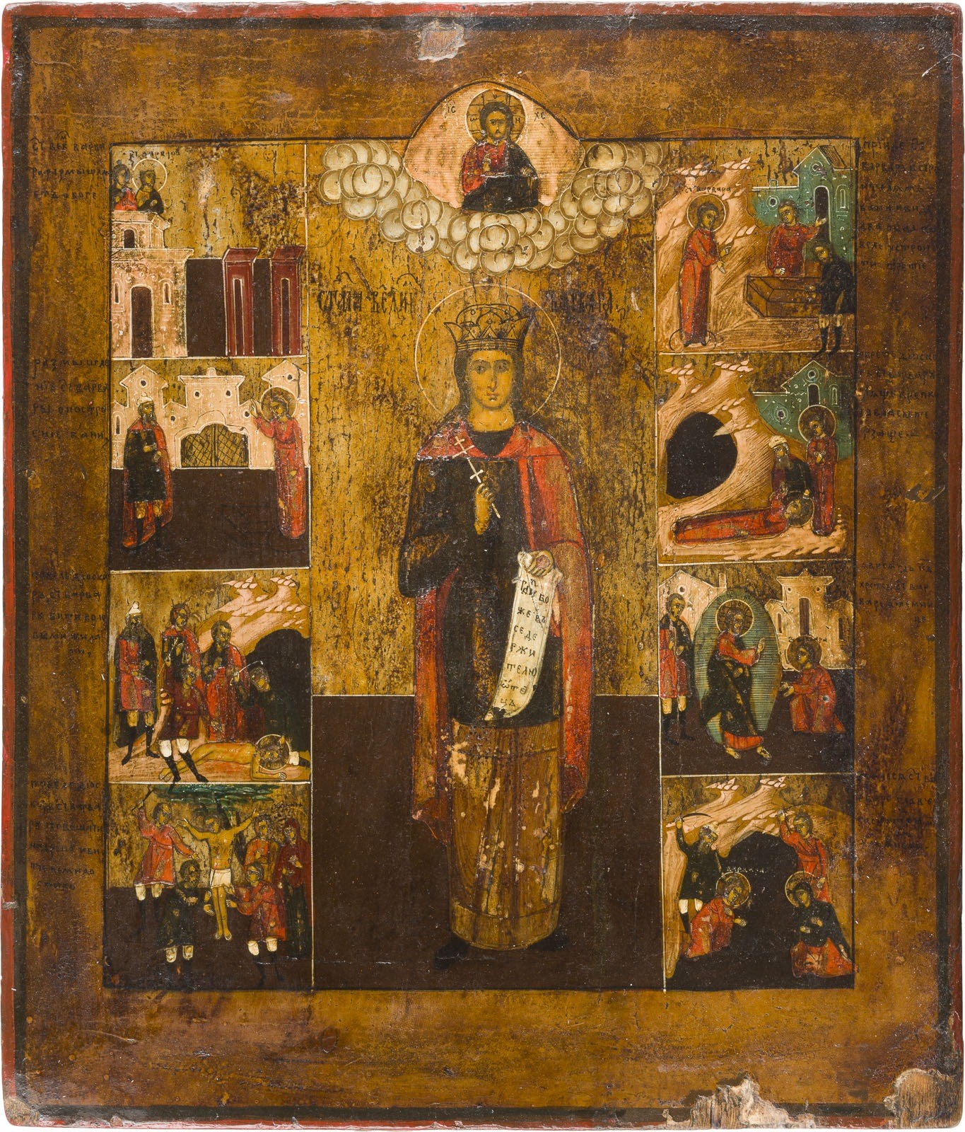 VITA-IKONE MIT DER HEILIGEN BARBARA MIT SZENEN IHRER VITA UND IHRES MARTYRIUMS