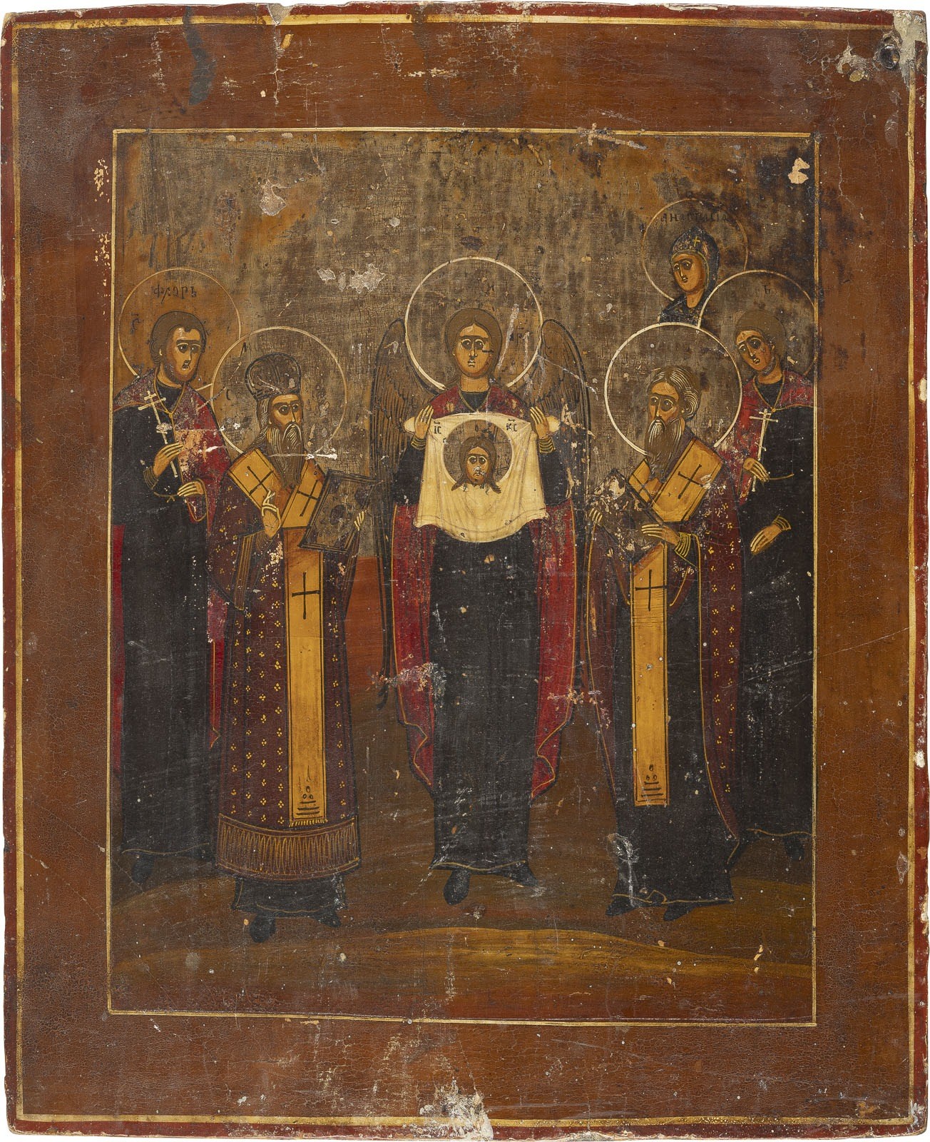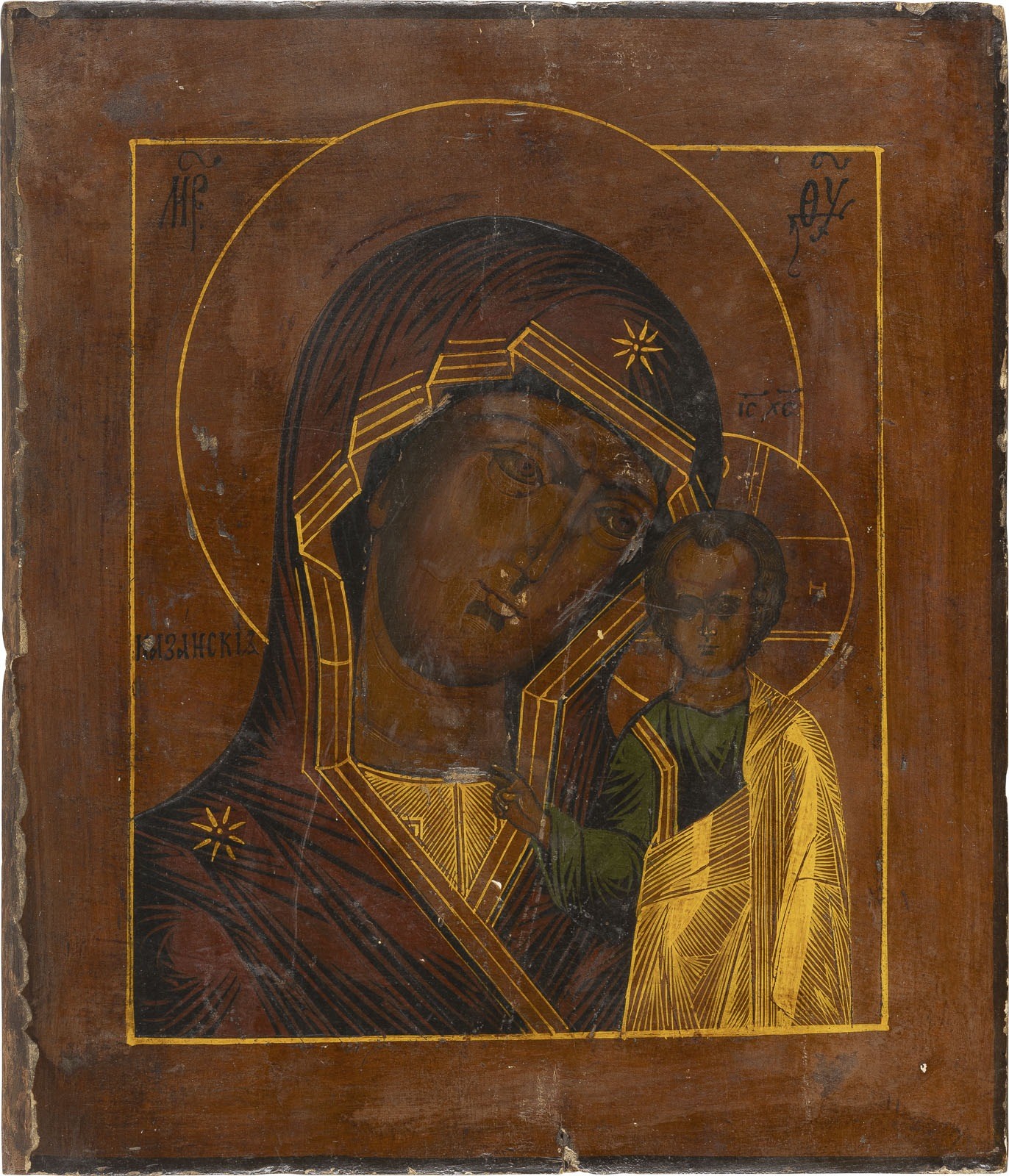 ZWEI IKONEN: GOTTESMUTTER VON KASAN (KASANSKAJA) UND PATRONATSIKONE MIT DEM ERZENGEL MICHAEL UND HEILIGEN