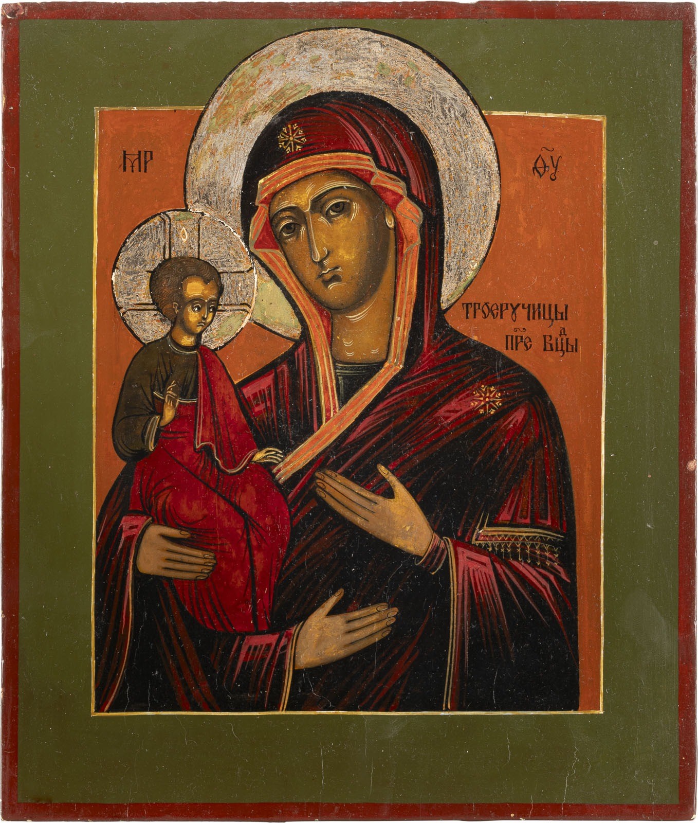 ZWEI IKONEN MIT DER GOTTESMUTTER VON KASAN (KASANSKAJA) UND DER DREIHÄNDIGEN GOTTESMUTTER