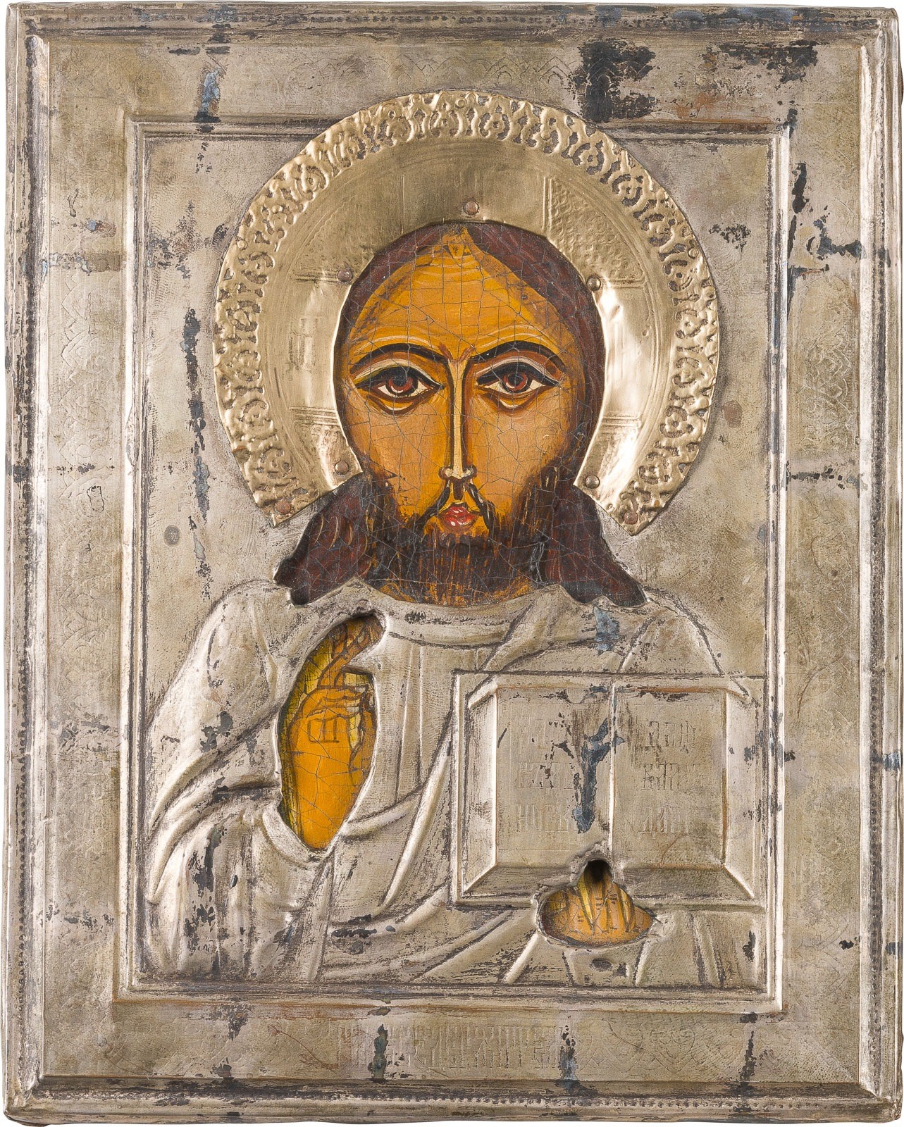 ZWEI IKONEN MIT OKLAD: CHRISTUS PANTOKRATOR UND HEILIGER SERAPHIM VON SAROW