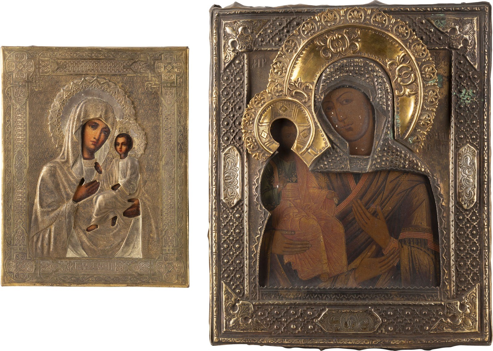 ZWEI IKONEN MIT OKLAD: GOTTESMUTTER VON TICHWIN UND DREIHÄNDIGE GOTTESMUTTER (TRICHEIROUSA)