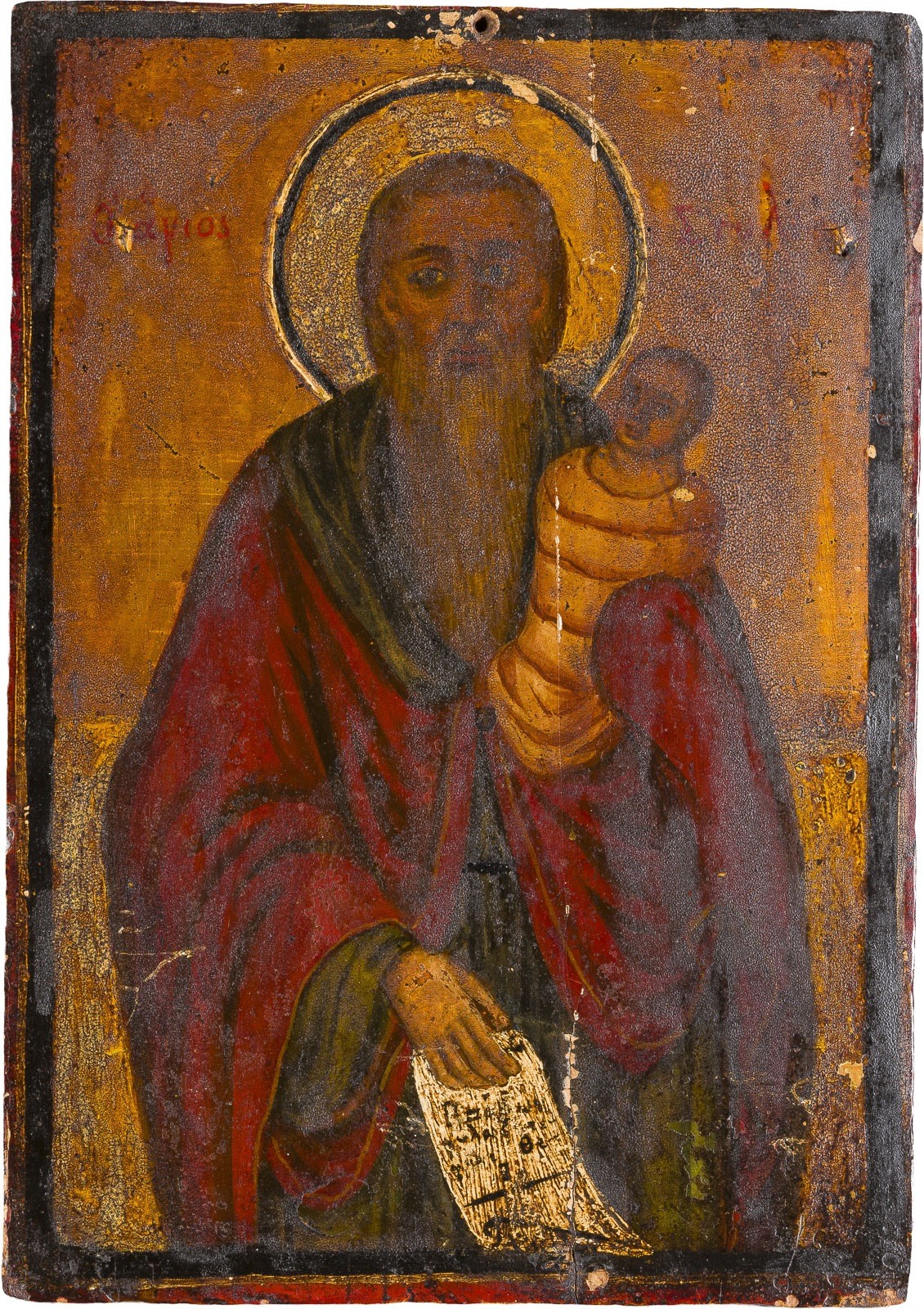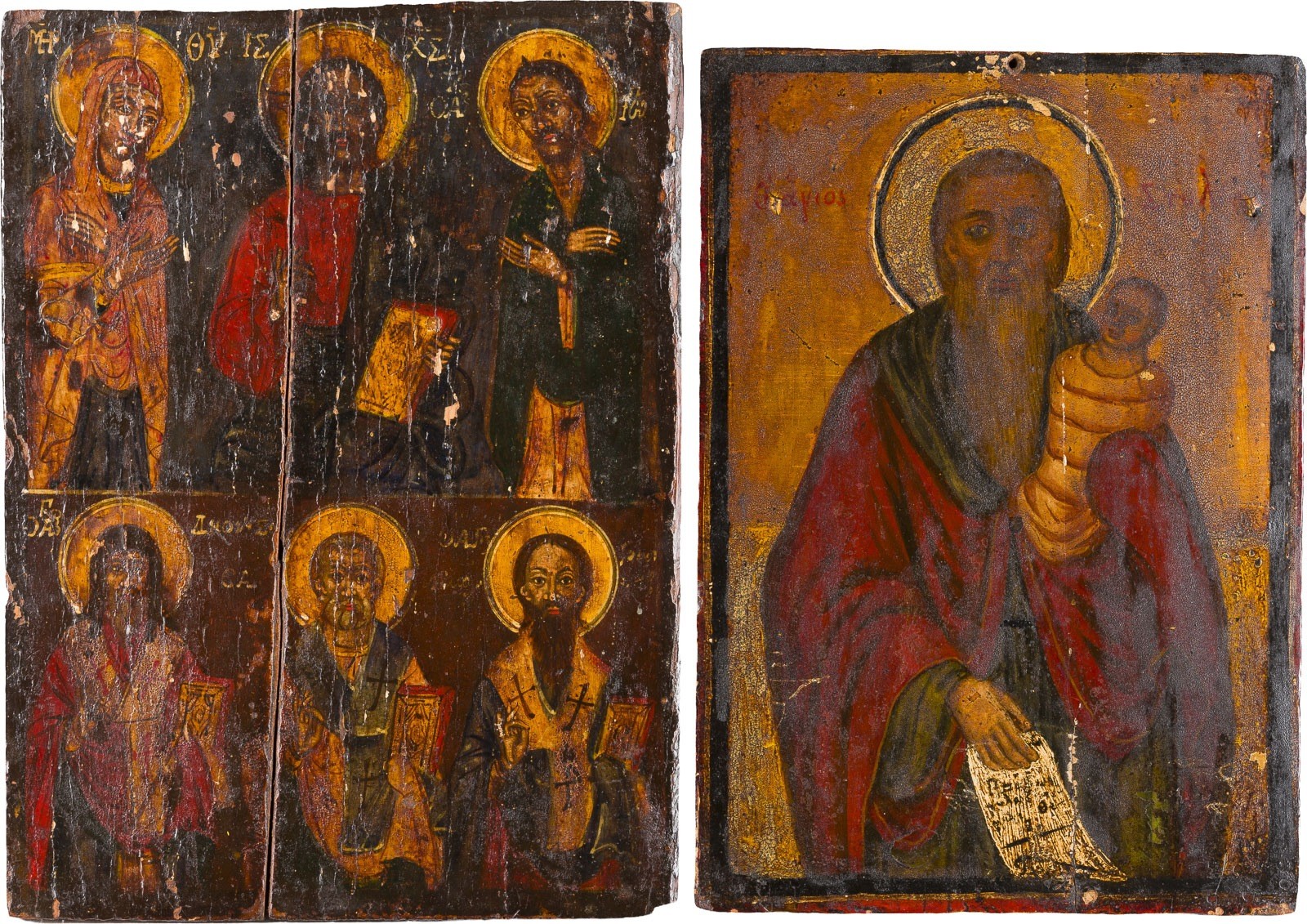 ZWEI IKONEN: ZWEIFELDER-IKONE MIT DEESIS UND DREI HEILIGEN UND HEILIGER STYLIANOS