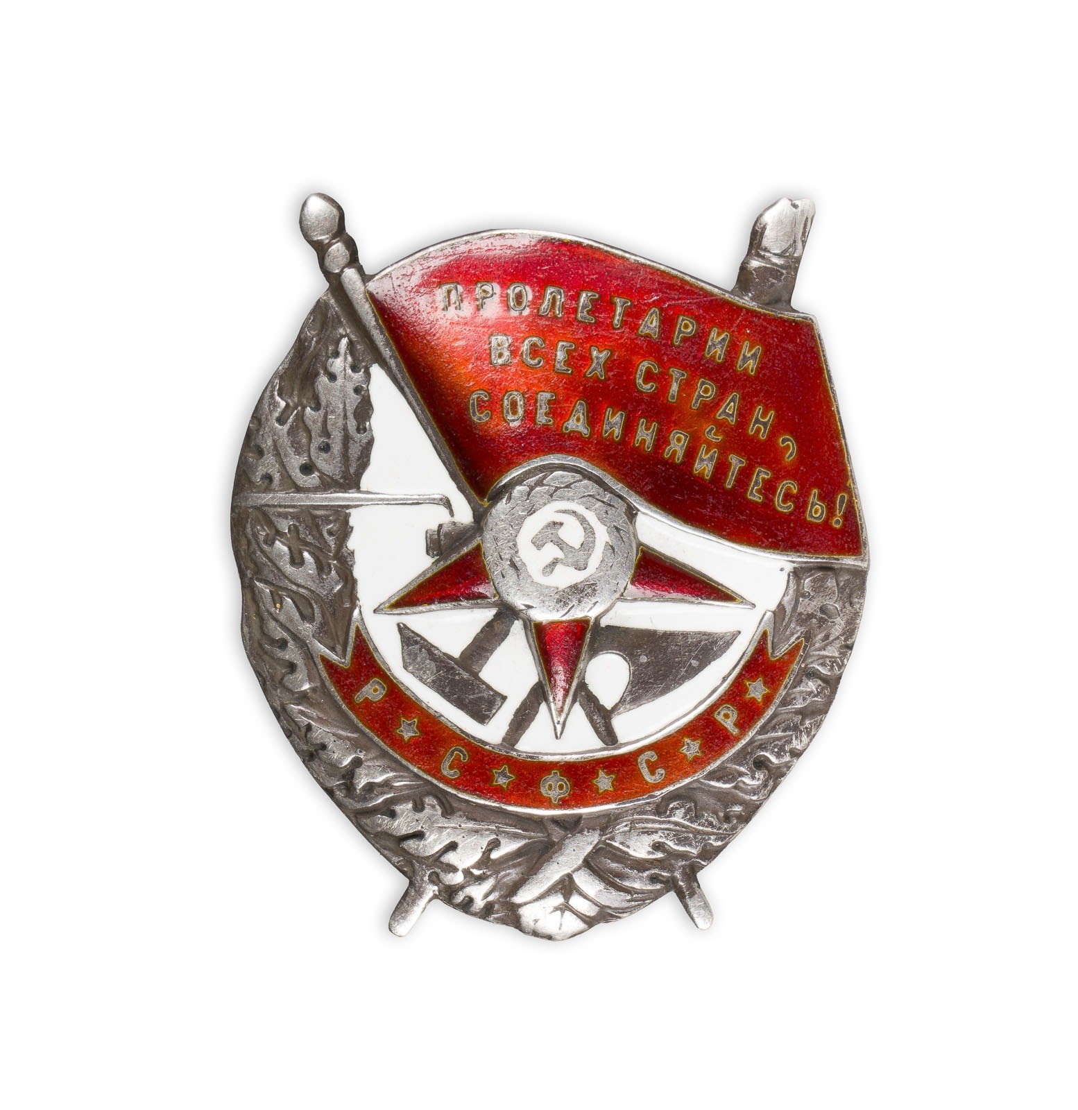 ORDER OF THE RED BANNER 'RSFSR' Russian/Soviet Union, 1918-1930 Silver, enamelled in red and white. Serial number on the top back. 4.6 x 4 cm.