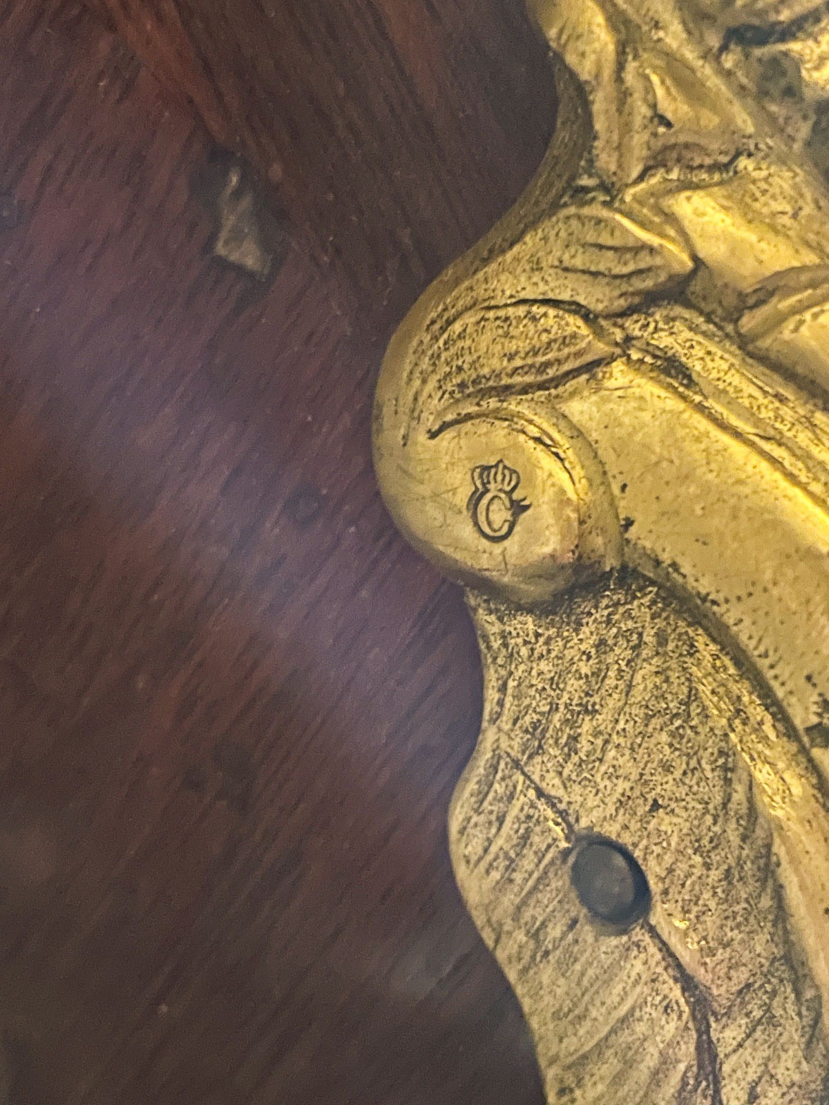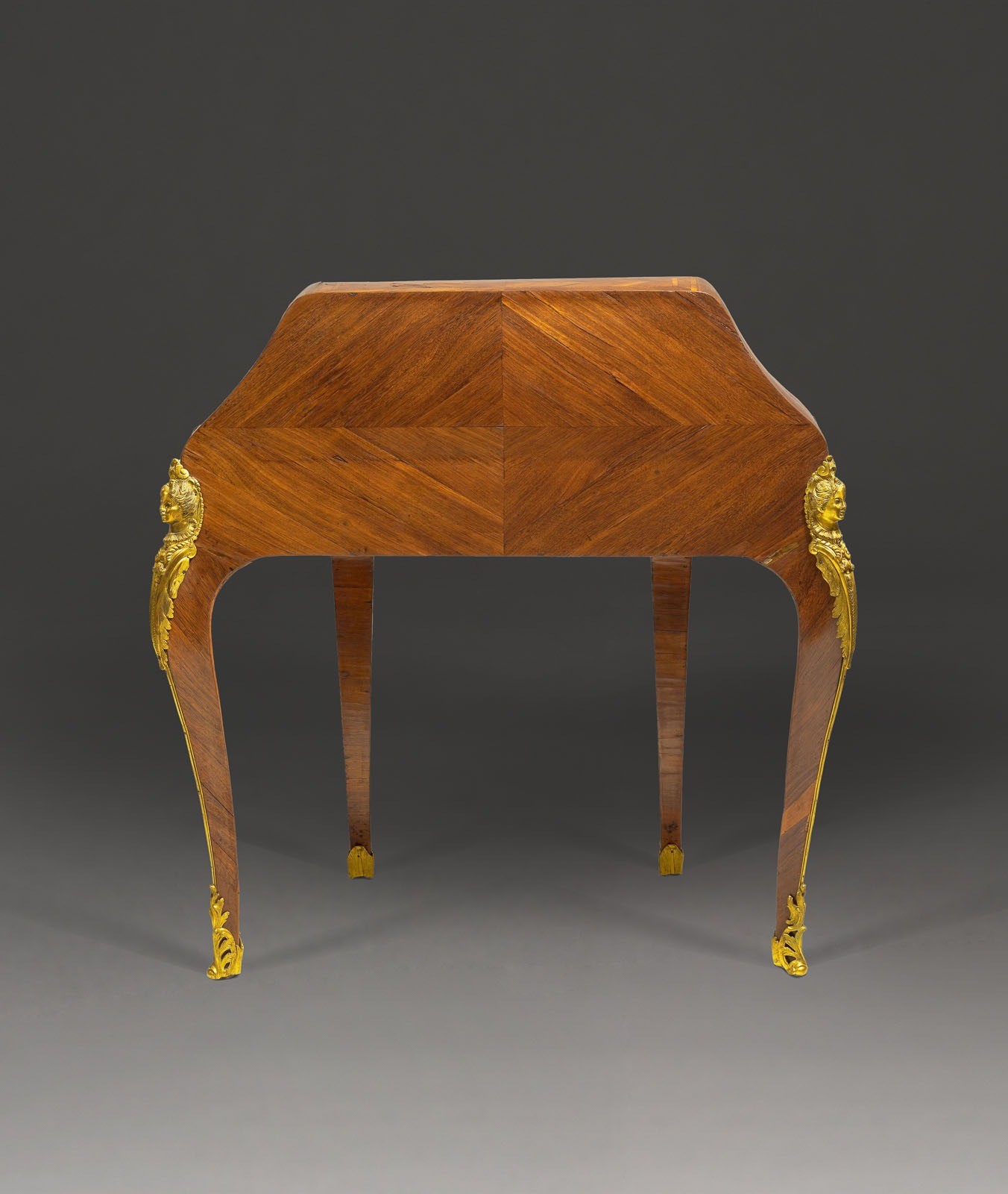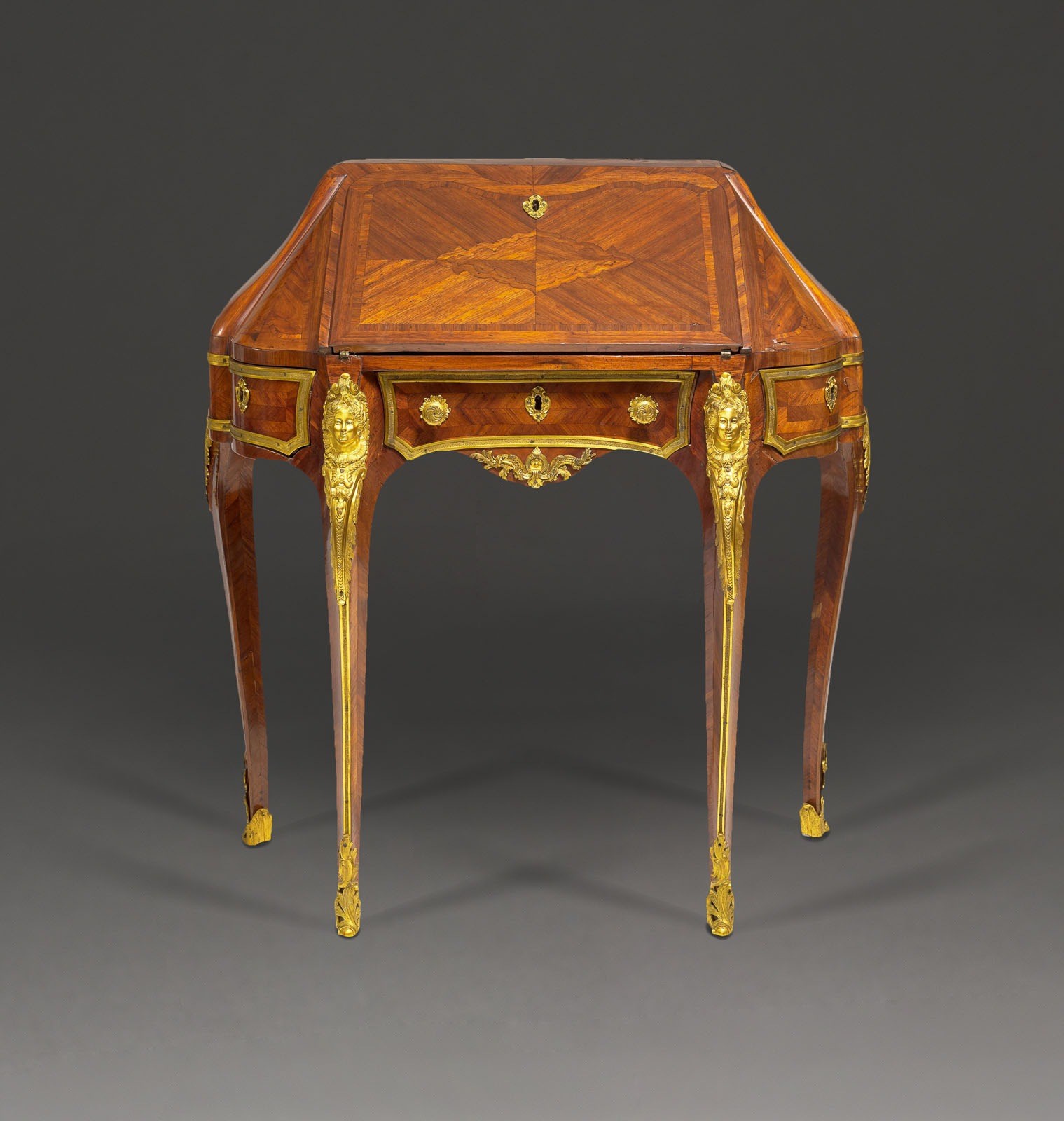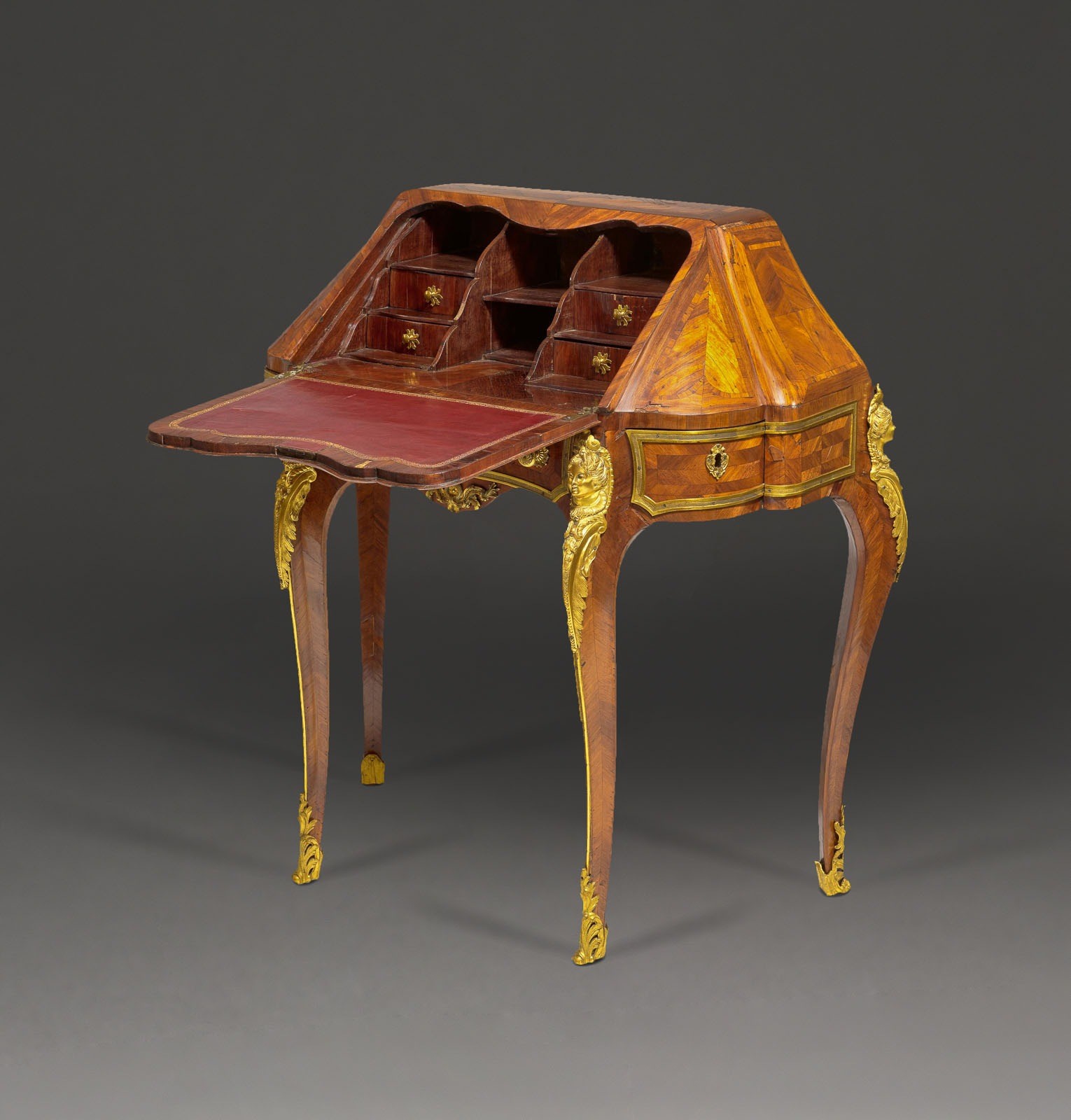 FROM THE ROMANOV PALACE ILJINSKOJE: AN IMPORTANT ORMOLU-MOUNTED SECRÉTAIRE DE DAME French, Paris, 1745-1749 Mahogany and rosewood veneer, gilt-bronze mounts, leather-inlaid writing surface. Bronze mounts with the C couronné (French tax stamp). Underside with inventory label of the Iljinskoje Palace beneath the Imperial crown. Minor losses. 100 × 97 × 45 cm. The Palace of Iljinskoje is situated about 30 kilometers west of Moscow on the banks of the Moskva River. The estate was first mentioned in the 17th century as a nobleman's property. Its present form dates largely from the 19th century, when it belonged to the princely Yusupov family - one of the wealthiest families of the Russian Empire. Under Prince Nikolai Borisovich Yusupov, the estate was developed into a neoclassical summer residence, comprising the main palace, several outbuildings, and an extensive landscaped park. Iljinskoje was regularly frequented by members of the high nobility and later also by members of the Romanov dynasty. In the 1860s, Emperor Alexander II gifted the estate of Iljinskoje near Moscow to his consort, Empress Maria Alexandrovna. After her death, the estate passed to her son, Grand Duke Sergei Alexandrovich, brother of Emperor Alexander III. His wife, Grand Duchess Elizabeth Feodorovna, spent much time at Iljinskoje, as did other members of the Imperial family. The estate was considered one of the Romanovs' favored summer retreats. During the remodeling and expansion of the residence, numerous furnishings were transferred from the Imperial palaces in St. Petersburg to Iljinskoje. Several of these pieces are preserved today and displayed in the "New Jerusalem" Museum.