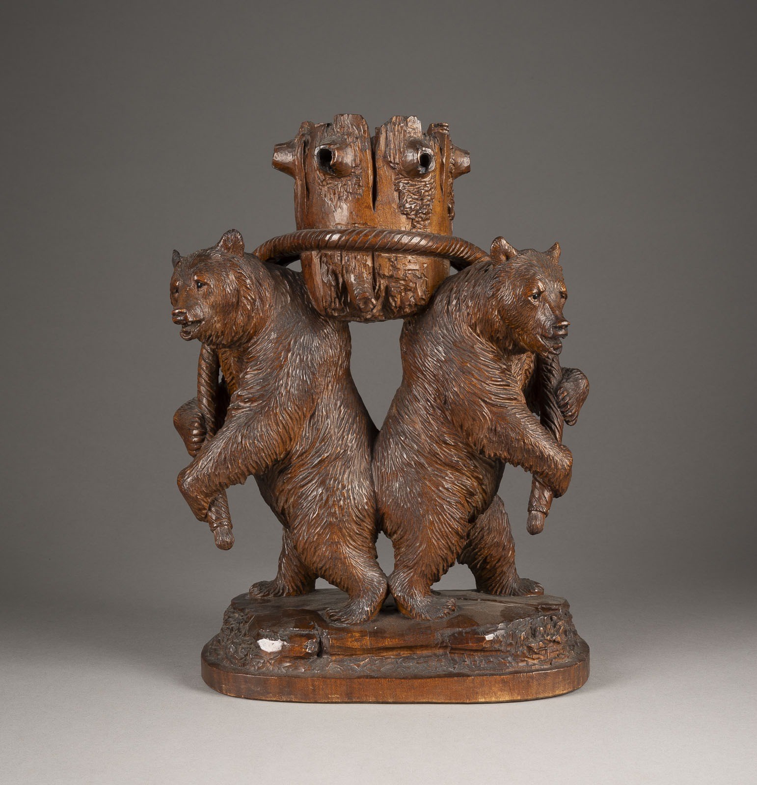 A WOODEN DECANTER STAND WITH TWO BEARS Russian, 2nd half of 19th century Finely carved. 36.3 cm high