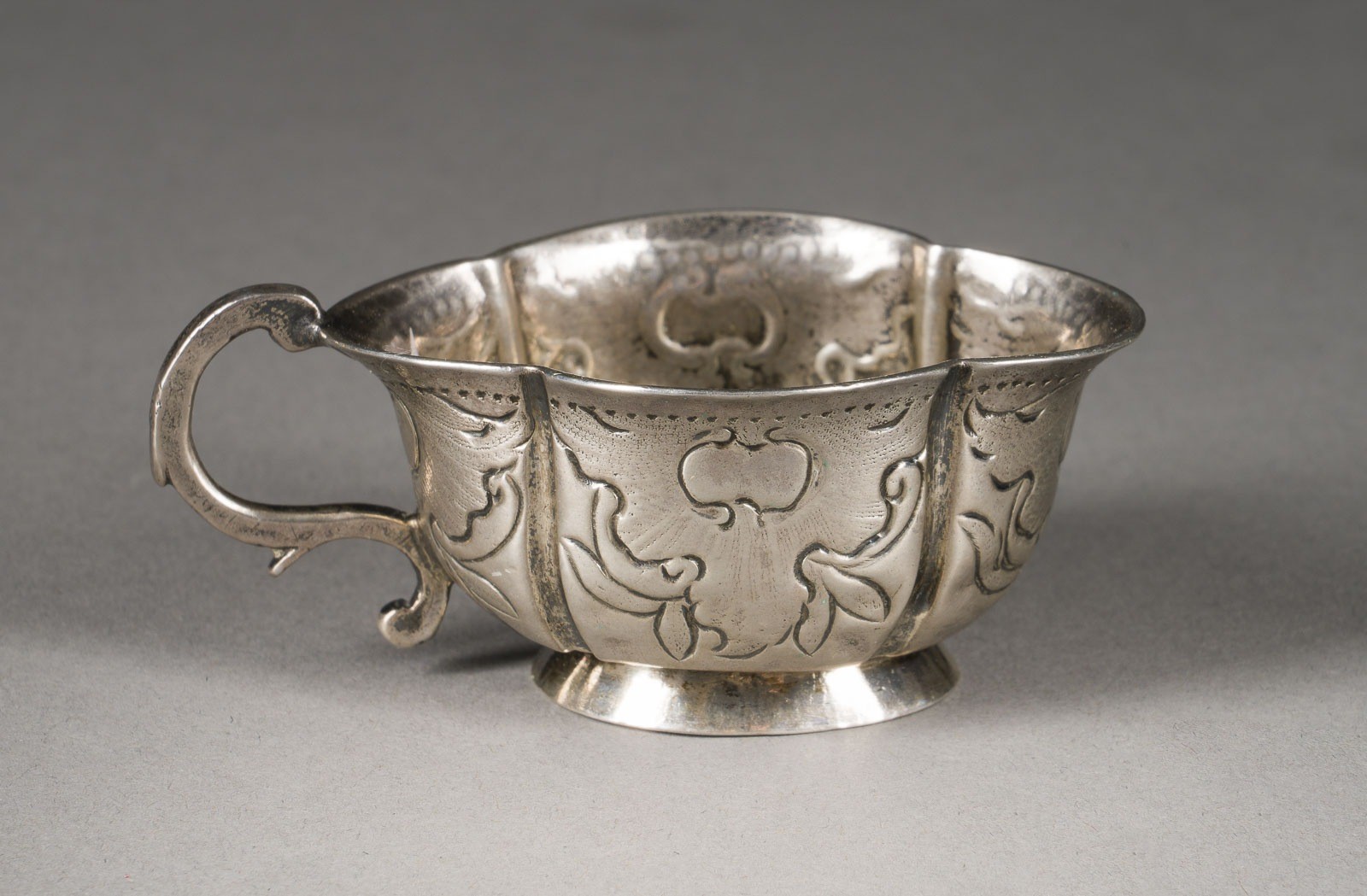 A SILVER CHARKA Russian, Moscow, 1777 With chased rocailles. Marked under base with city hallmark, assayer's mark, alderman's mark and master's mark. 7 cm long, 27 gr.