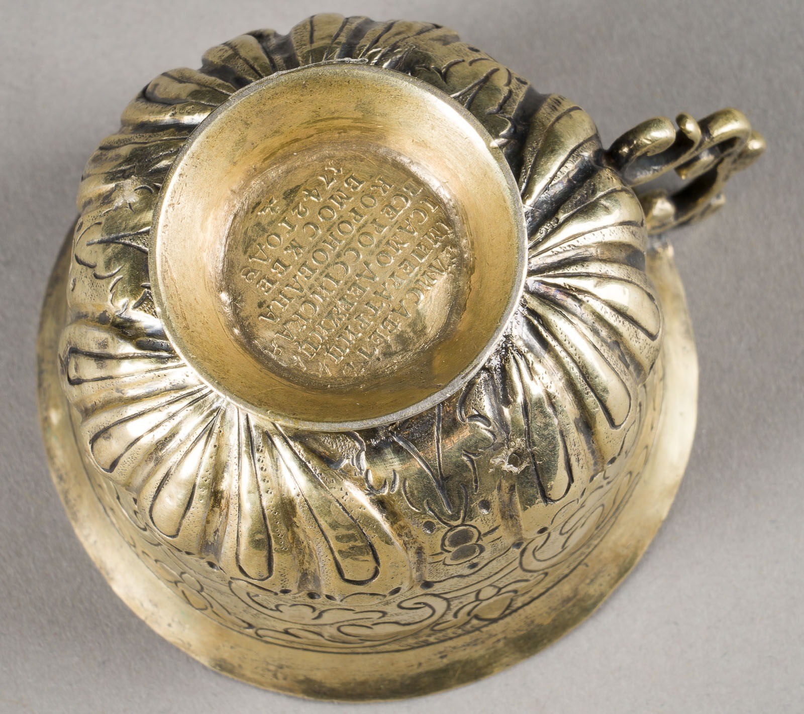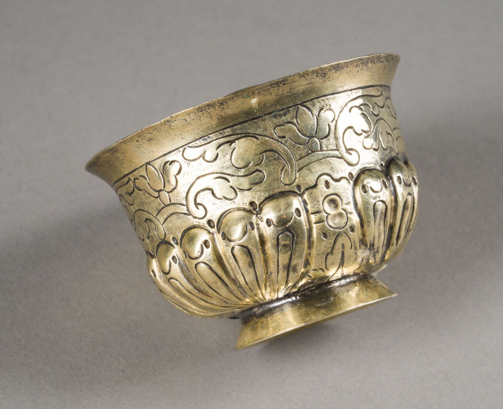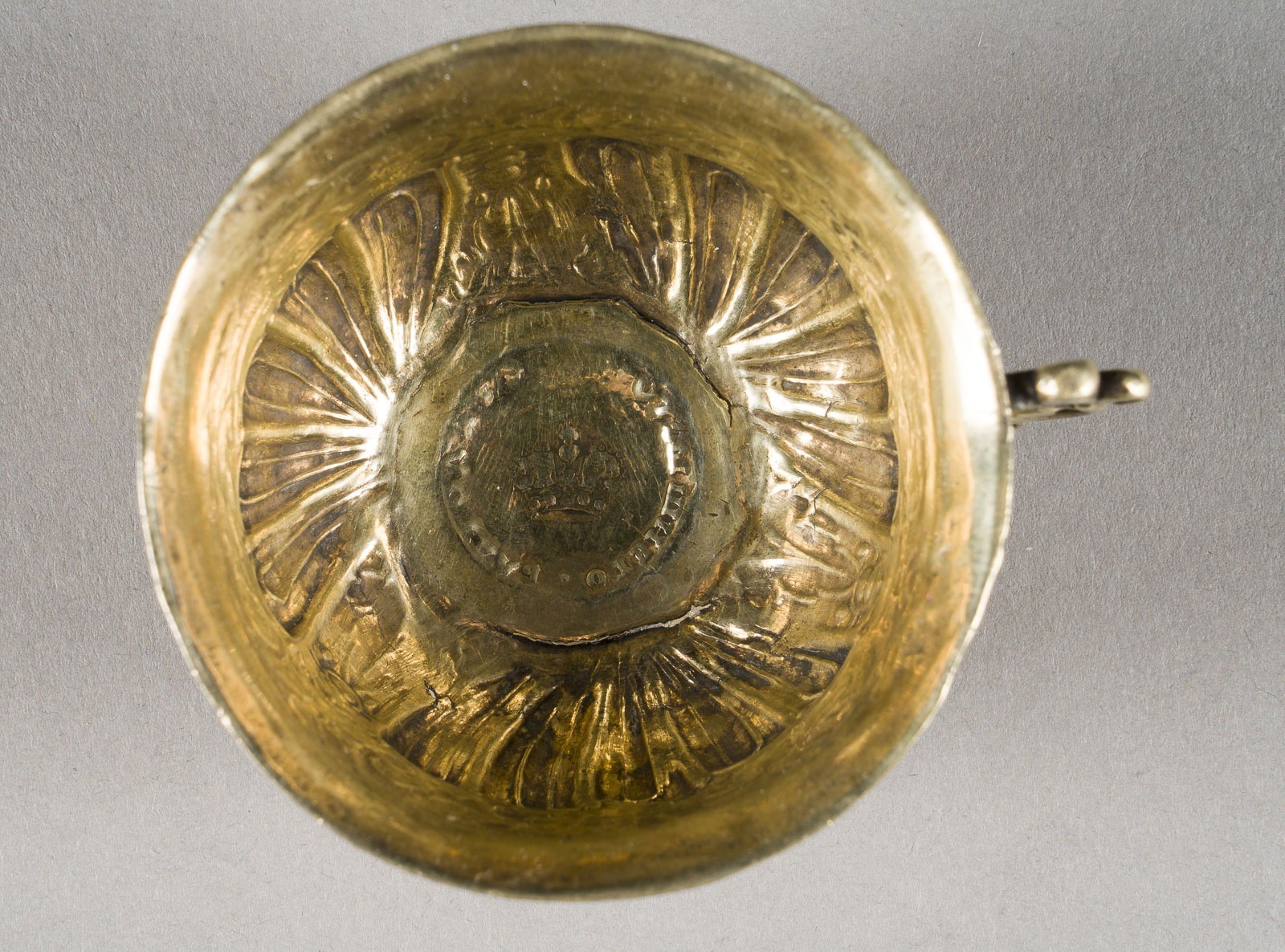 A SILVER_GILT CHARKA WITH THE CORONATION COIN OF TSARINA ELIZABETH OF RUSSIA, 1742 Russian, Moscow, 1746 Silver, repoussé and chased, parcel-gilt. Struck with city mark, assay master's mark, and master's mark. 3.9 cm high, 56 gr.