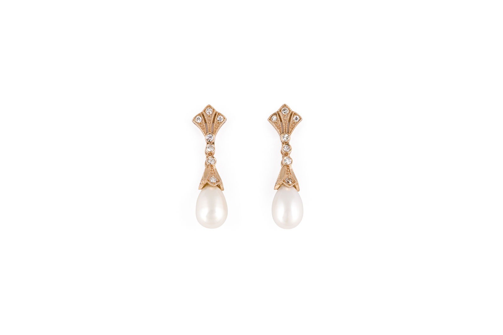 zus. ca. 0.50 ct. und jeweils einer Perle.