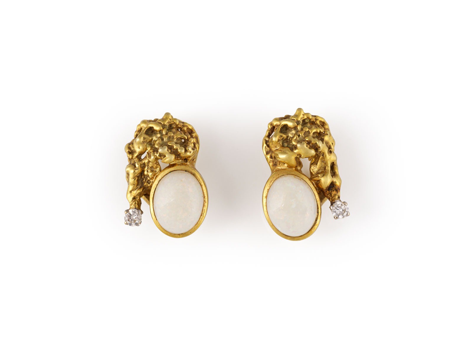 GG 585. Maße: ca. 21,0 mm x 13,3 mm. Ges.-Gew.: ca. 4,1 g. Ohr Clipstecker, besetzt mit jeweils einem Voll-Opal-Cabochon á ca. 1.70 ct., sowie