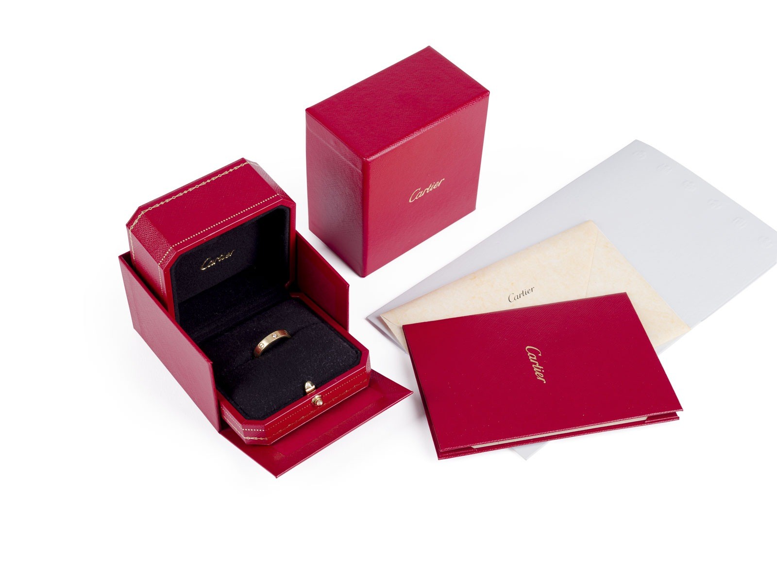 GG 750. Ringmaß: 57. Ringbreite: ca. 3,9 mm. Ges.-Gew.: ca. 5,0 g. 'Cartier' Love Ring mit einem Diamanten. Referenz: CRB4056157.