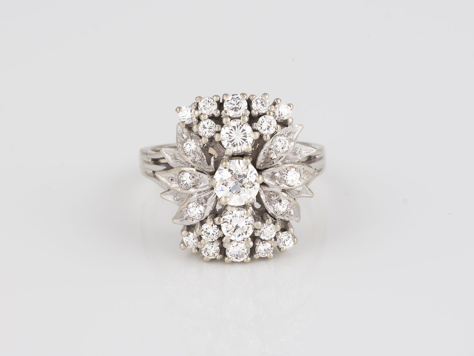 WG 585. Ringmaß ca. 54. Ges.-Gew.: ca. 7,47 g. 23 Diamanten im Brillant- und Altschliff, zus. ca. 1.54 ct, etwa F-H VS1-I2. Angaben laut