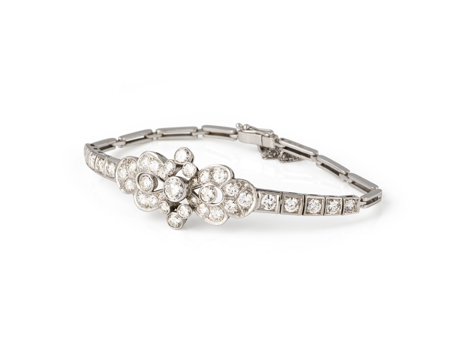 WG 585. Maße: L.: ca. 19,0 cm, B.: 17,5 mm. Ges.-Gew.: ca. 13,0 g. Fantastisches Armband, besetzt mit reichlich Brillanten zus. ca. 3.20 ct. G-I/VVS-SI.