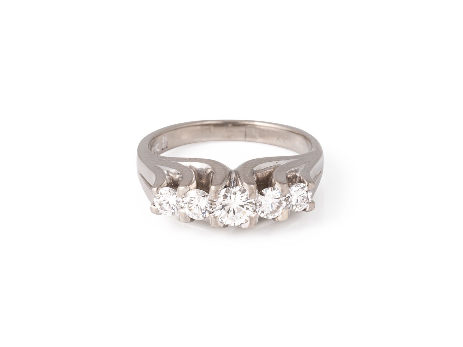 WG 750. Ringmaß: ca. 57,5. Ringkopfmaße: ca. 18,1 mm x 7,3 mm. Ges.-Gew.: ca. 11,8 g. Christian Bauer. Ring mit angereihten Brillanten zus. ca. 0.95 ct TW/VS. Mittelstein: ca. 0.35 ct. TW/VS.