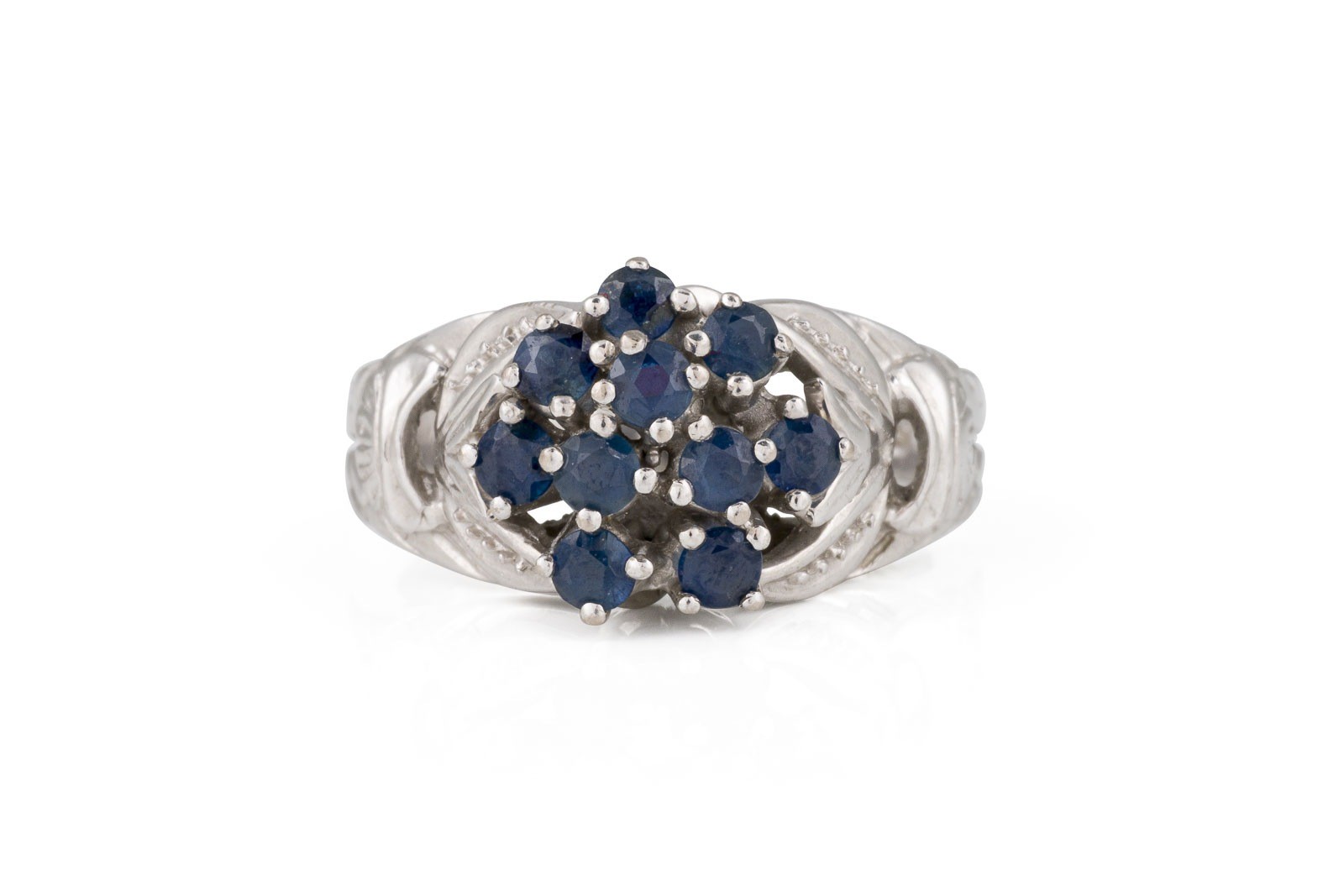 WG 750. Ringmaß: ca. 54,5. Ringkopfmaße: ca. 11,5 x 12,6 m. Ges.-Gew.: ca. 9,5 g. Ring, besetzt mit Saphiren zus. ca. 0.85 ct.