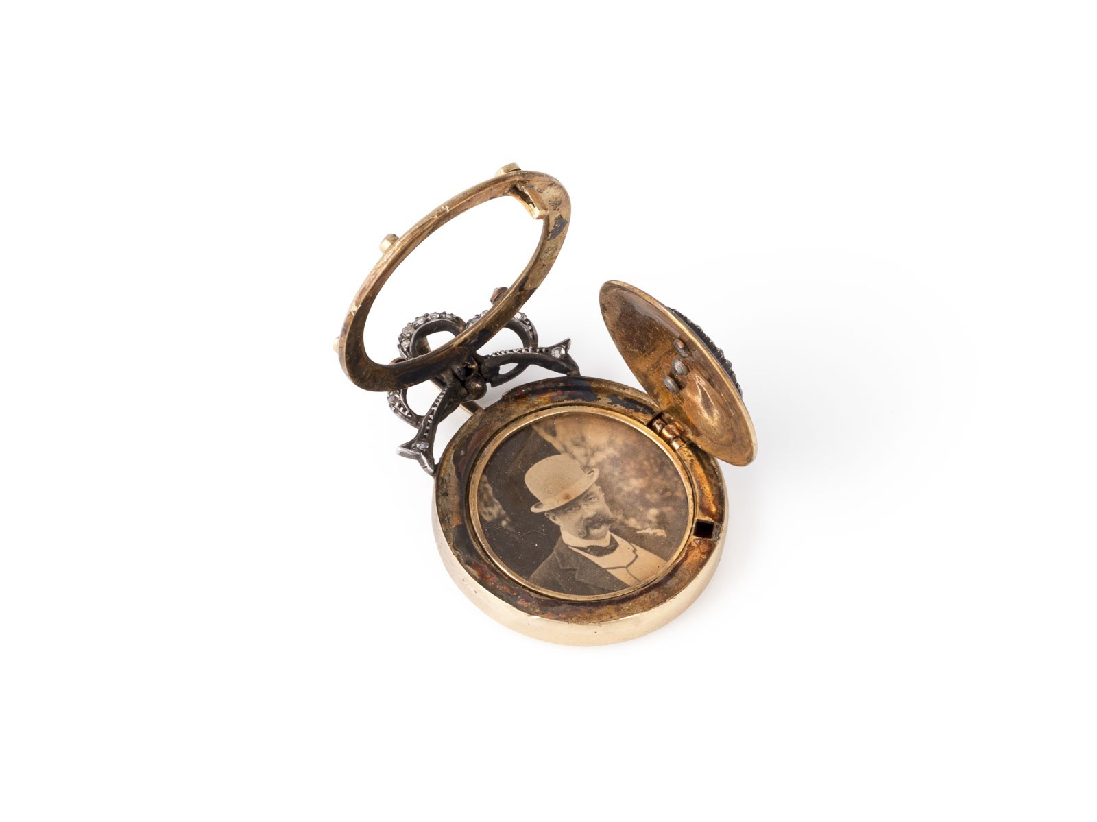 GROßER EMAILLE MEDAILLON ANHÄNGER 19. JH.