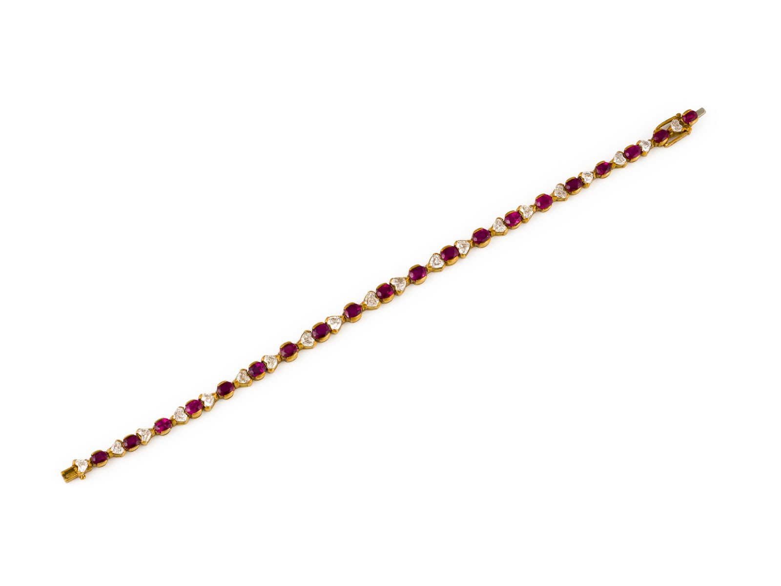 GG 750. Maße: L.: ca. 18,0 cm. B.: ca. 5,0 mm. Ges.-Gew.: ca. 15,9 g. Tennis Armband, besetzt mit ca. 20 Diamanten in Herzform-Schliff zus. ca. 1.50 ct.
