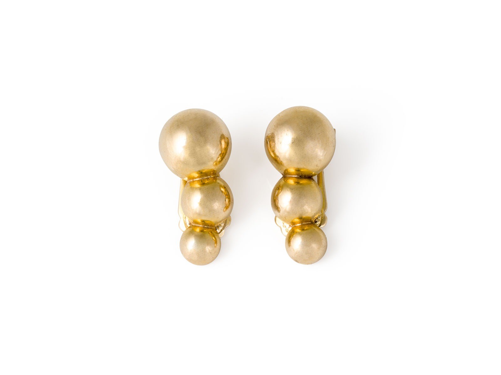 GG 585. Maße: L.: ca. 23,9 mm, B.: ca. 11,0 mm. Ges.-Gew.: ca. 7,3 g. Leicht geschwungene Ohrclips im Kugeldesign.